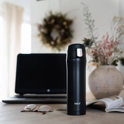Slogovna in kompaktna termovka NILS Camp v črni barvi je zasnovana za udobje vsak dan. Dvojna nerjavna stena zanesljivo ohranja pravo temperaturo napitkov skozi ves dan – od jutranje kave do osvežilne limonade na poti.