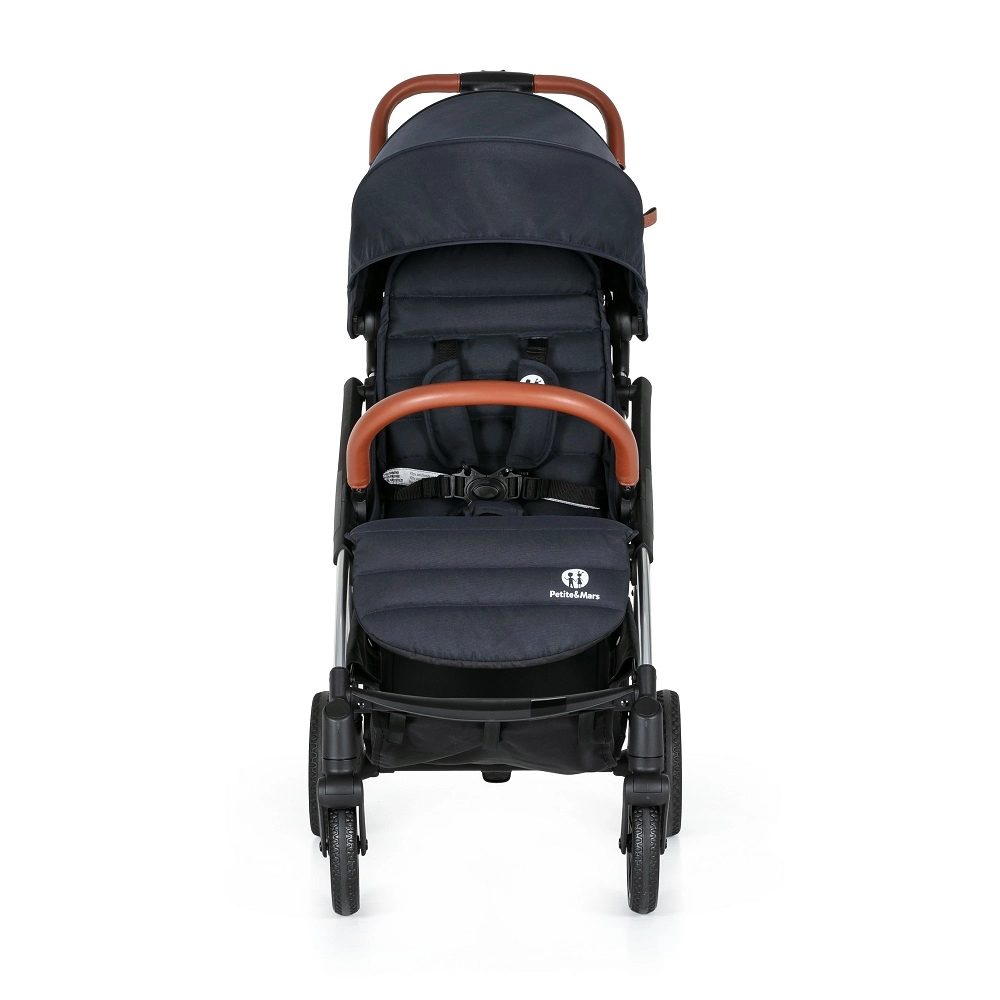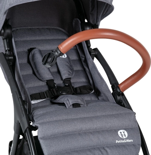 Lahek in kompakten športni voziček PETITE&MARS Cross Anthracite Blue lahko razprete z eno roko, zahvaljujoč samodejnemu zložljivemu mehanizmu pa se sam zloži in v zloženem stanju stoji. Ponuja prostoren in udoben sedež z nastavljivim naslonom za hrbet in noge, podaljšljivo strešico z vizirjem ter 5-točkovni varnostni pas. Velika kolesa z vzmetenjem gladko prevozijo mesto in park, medtem ko spodnja košara z odličnim dostopom sprejme manjši nakup. Primeren za otroke od 6 mesecev do 22 kg.