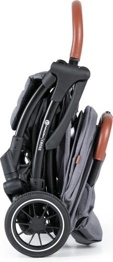 Voziček razprete z eno roko, po uporabi pa se sam zloži v kompaktno obliko in v zloženem stanju samostojno stoji. Idealen za mesto, javni prevoz in avto.