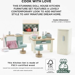 Razširite možnosti igre vaših otrok s tem čudovitim in podrobnim setom kuhinje iz kolekcije Daisylane. Ta set ne samo da obogati vašo hišico za punčke, ampak tudi navdihuje otroke k ustvarjalnosti in domišljijski igri. Vsak kos je izdelan s poudarkom na najmanjše podrobnosti, s čimer prispeva k realistični igri.