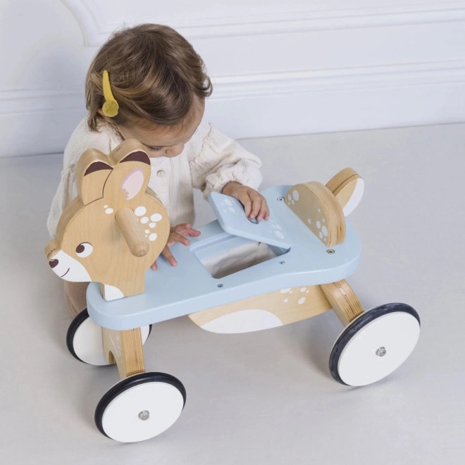 Leseni poganjalec Srnica ponuja robustno konstrukcijo iz trajnostnega lesa, ki zagotavlja stabilno vožnjo in varnost za male voznike.