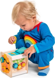 Vesela in poučna motorna kocka Le Toy Van Petilou iz naravnega lesa z barvnimi elementi spodbuja domišljijsko igro in razvoj kognitivnih spretnosti pri otrocih. Izdelana iz trajnostno pridobljenega kavčukovega lesa in pobarvana z netoksičnimi barvami, zagotavlja varno in okolju prijazno igračo.