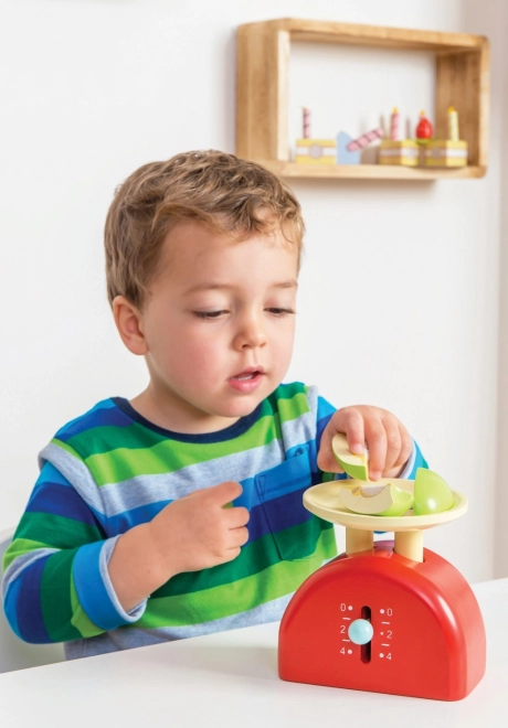 Ta pisana otroška tehtnica podpira domišljijsko igro, uči osnove tehtanja in štetja ter razvija fino motoriko in kognitivne veščine. Zahvaljujoč robustni izdelavi iz trajnostnega lesa odlično prenese vsakodnevno igro.