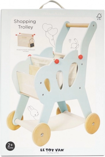 Privoščite otrokom realistično trgovsko igro z lesenim nakupovalnim vozičkom LE TOY VAN iz nagrajene kolekcije Honeybake. Robustna izdelava iz trajnostnih materialov, gladki robovi in lahko vodljiva kolesa zagotavljajo varno in zabavno vožnjo po »supermarketu« doma ali v vrtcu.