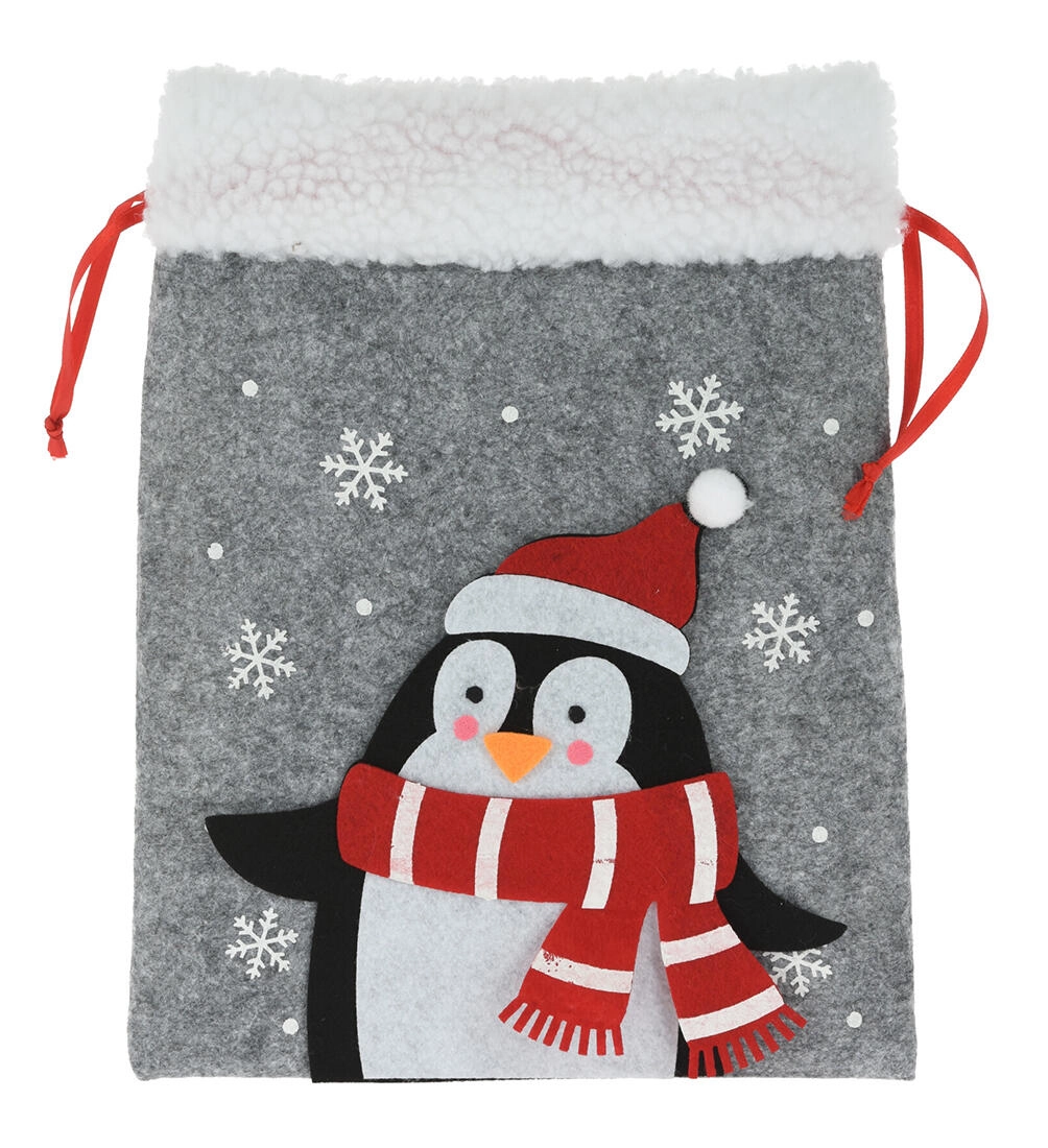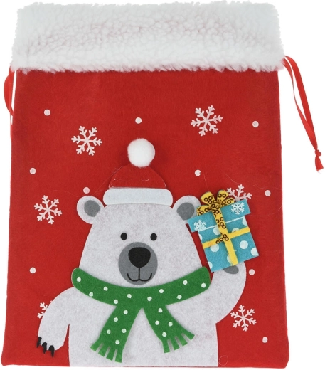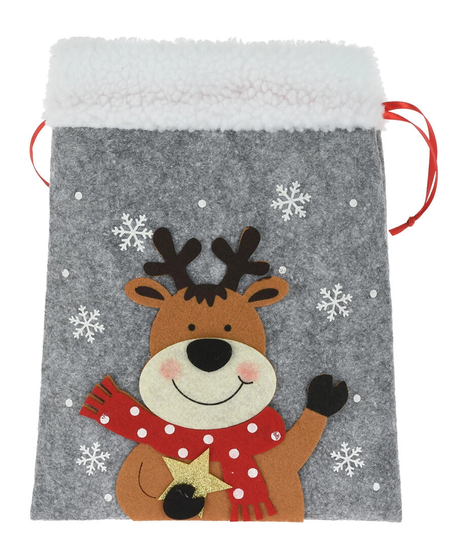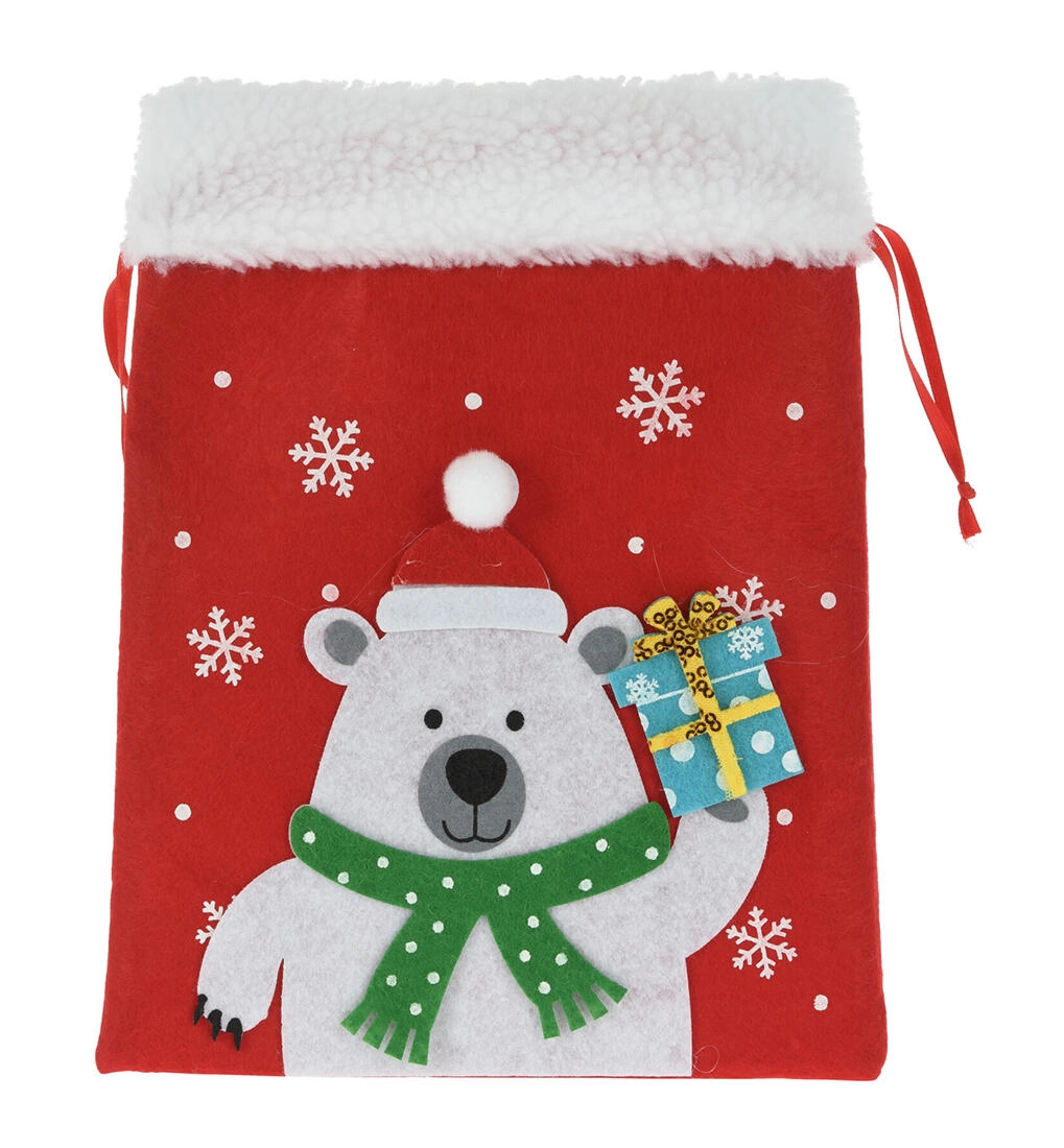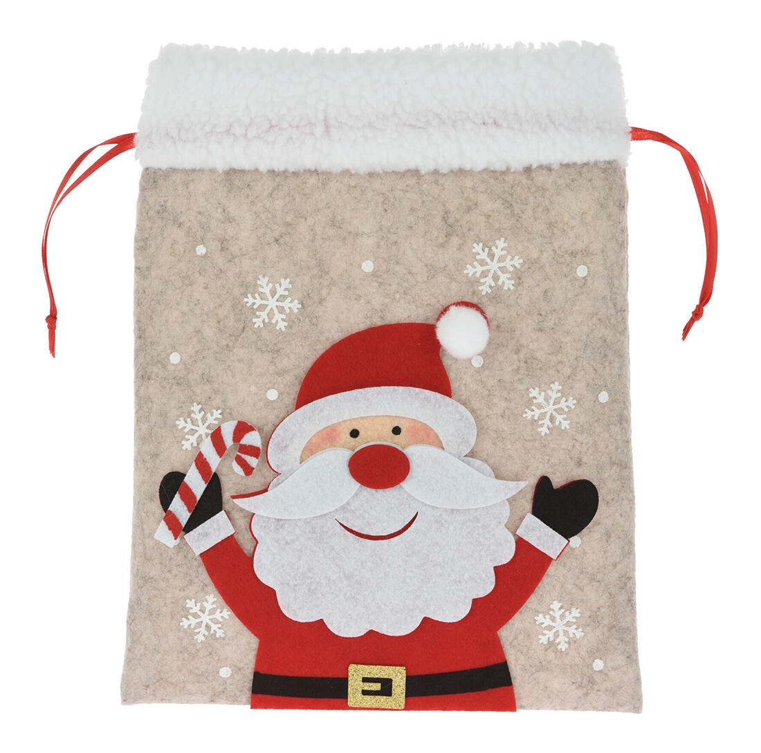 Ustvarite veselje ob obdarovanju z elegantnim božičnim filcnim vrečkom. Mehak material z nežnim puhom deluje toplo in dekorativno, medtem ko praznične aplikacije (MIKLAVŽ, jelen, polarni medved ipd.) razveselijo tako otroke kot odrasle. Vreček ima praktično zategovanje ob straneh, zato ga je enostavno napolniti in zanesljivo ostane zaprt.