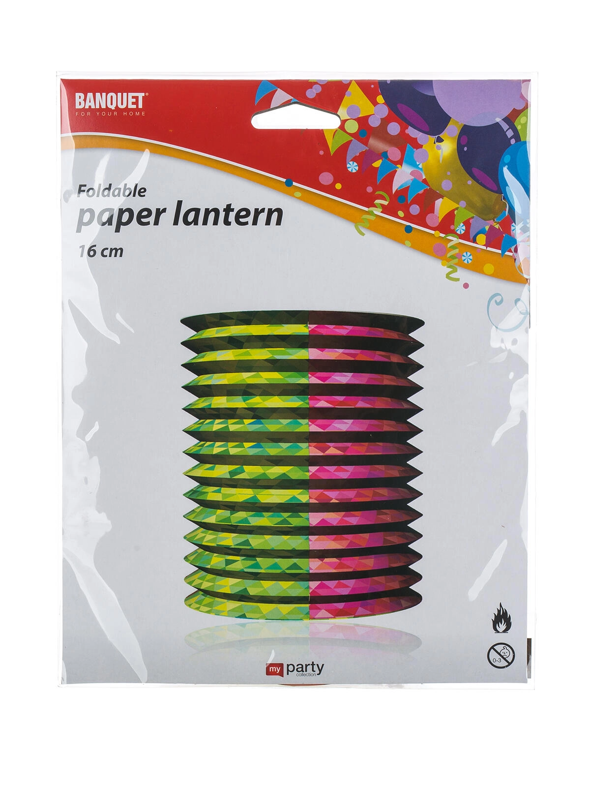Stilski papirnati lampijon MY PARTY s premerom 16 cm ustvari prijetno vzdušje na vsaki zabavi ali vrtnem druženju. Zahvaljujoč kovinski manšeti za pritrditev svečke je uporaba varna in stabilna. Na voljo v več vzorcih, enostavno obešanje in hitra namestitev. Idealen za okrasitev notranjih in zunanjih prostorov.