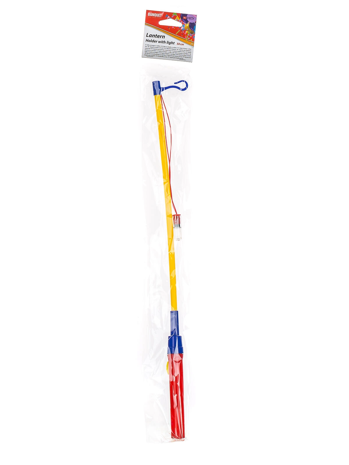 Popestrite lampijonsko povorko ali otroško zabavo s svetlečo palico MY PARTY. Trdna, a lahka plastična palica dolžine 50 cm olajša nošenje lampijona, z integrirano žarnico na vrvici pa zagotavlja varno in učinkovito osvetlitev brez odprtega ognja.