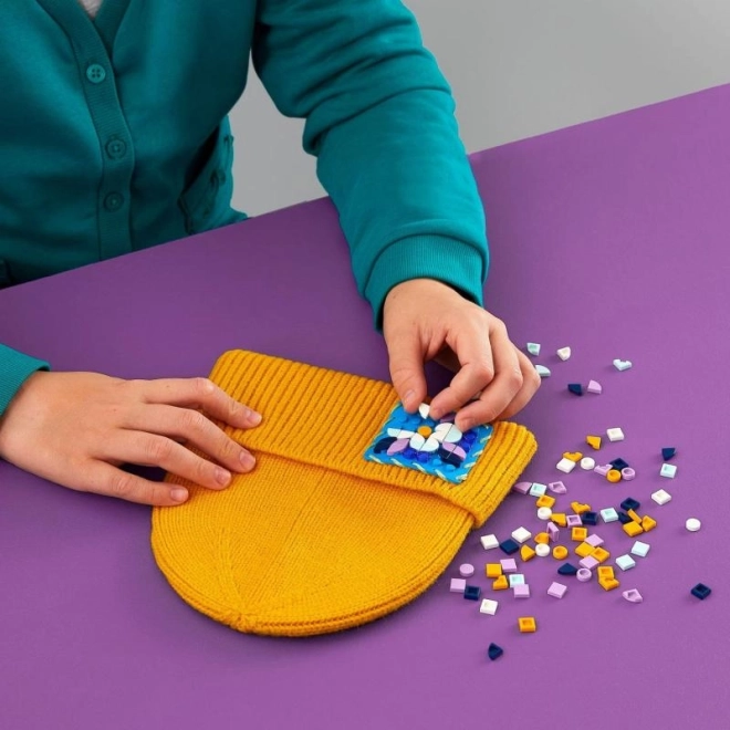 LEGO DOTS Okrasen našitek je odličen dodatek za vse male oblikovalce in ljubitelje DIY. Prilagodljiva podloga 6×6 se pritrdi neposredno na tkanino, bogat nabor barvnih delčkov pa omogoča hitro ustvarjanje izvirnega videza torb, kap, puloverjev ali peresnic. V paketu so priložene tudi ideje za navdih in enostavna navodila.