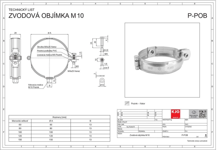 Praktična objemka za odtočne cevi s premerom 100 mm, brez konice, z navojem M10 iz odpornega pocinkanega materiala. Zagotavlja zanesljivo pritrditev, enostavno montažo in dolgo življenjsko dobo zaradi cinkane površinske obdelave.