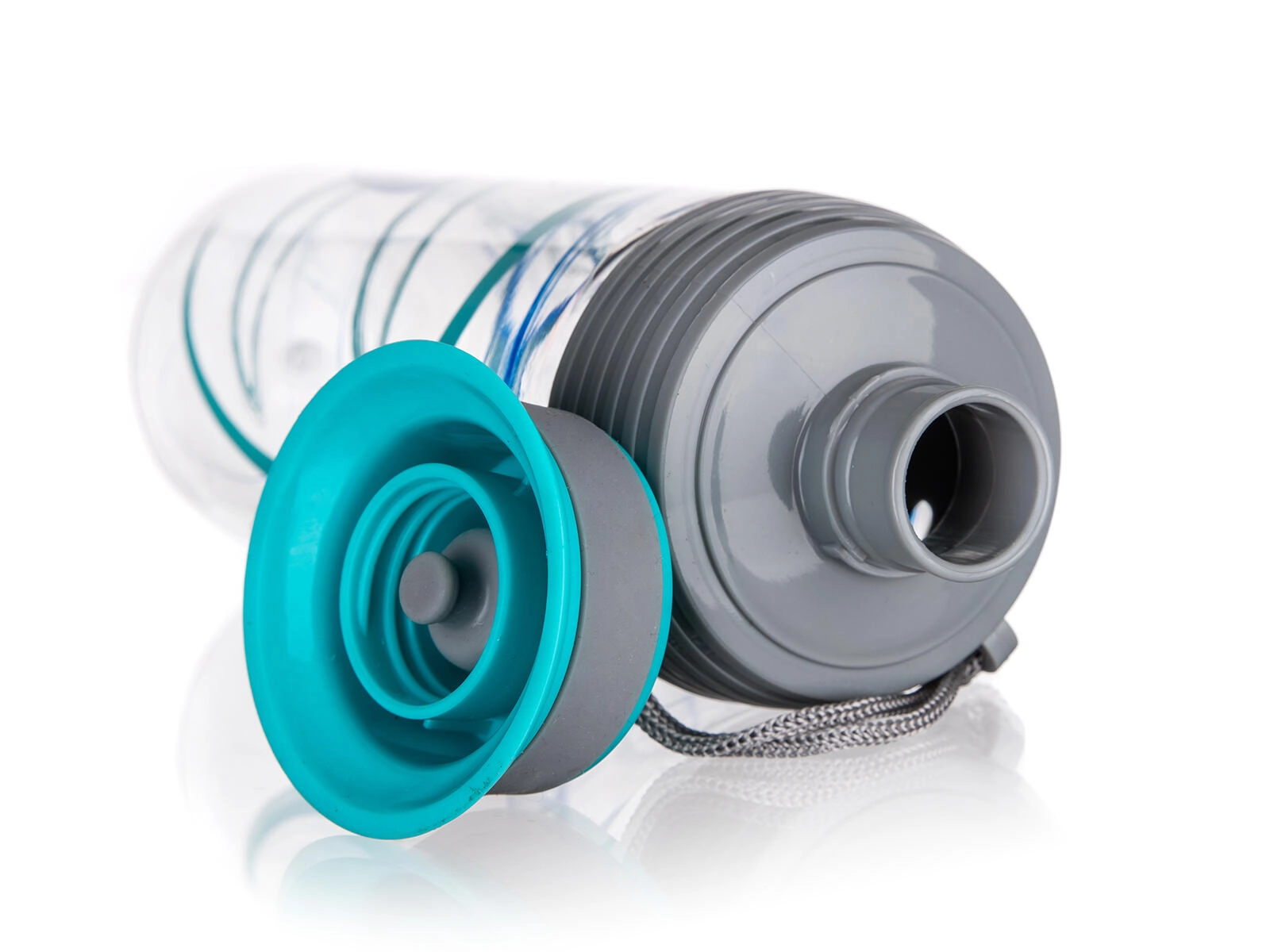 Zanesite se na navojni pokrov s praktičnim ustnikom in paščkom. Steklenica ne pušča in jo zlahka primete ali pritrdite na nahrbtnik.