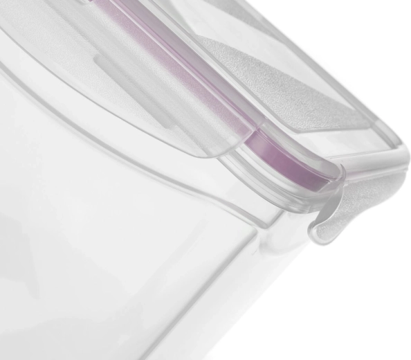 Pravokotna plastična posoda LARA z rožnatim silikonskim tesnilom je zasnovana za vsakodnevno uporabo v kuhinji. Zahvaljujoč zrakotesnemu zapiranju zanesljivo ohranja svežino, aromo in okus živil ter preprečuje iztekanje tekočin. Prozorno ohišje omogoča hitro kontrolo vsebine brez odpiranja.