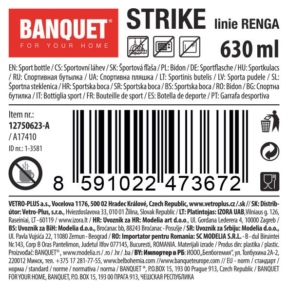 - Prostornina 630 ml – idealna kapaciteta za šport in dnevno hidracijo.