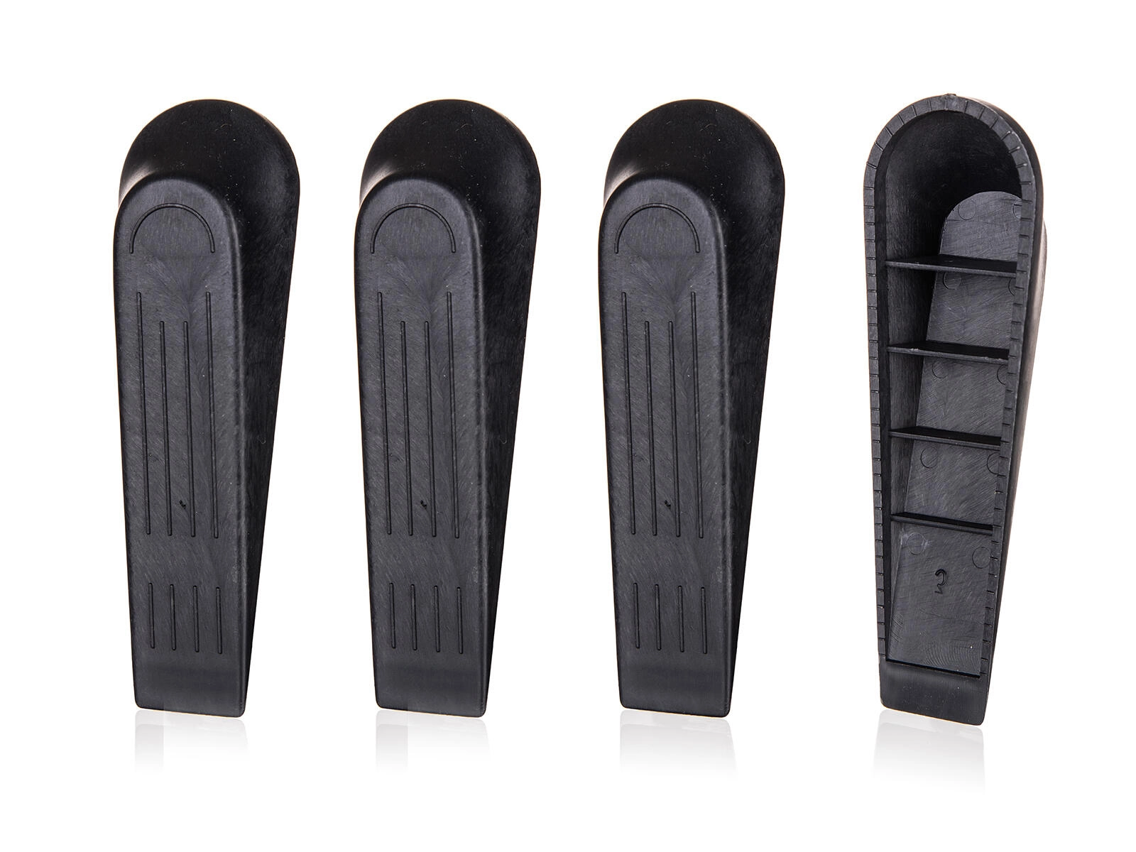 Zanesljivi klini za vrata v univerzalni črni barvi se zaradi zožujoče se oblike preprosto potisnejo pod večino notranjih vrat. Protidrsni žlebovi povečajo oprijem in stabilnost, zato bodo vrata ostala natanko tam, kjer jih potrebujete.