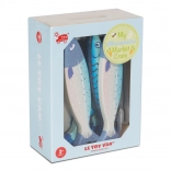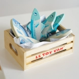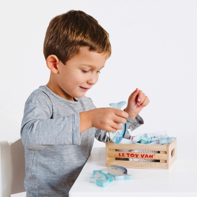 Ta lesena škatla z ribicami je popolna za igro vlog ter izobraževanje o različnih vrstah hrane. Podpira zdrave prehranjevalne navade in je odličen dodatek vsaki otroški kuhinji ali prodajnemu stojnic.