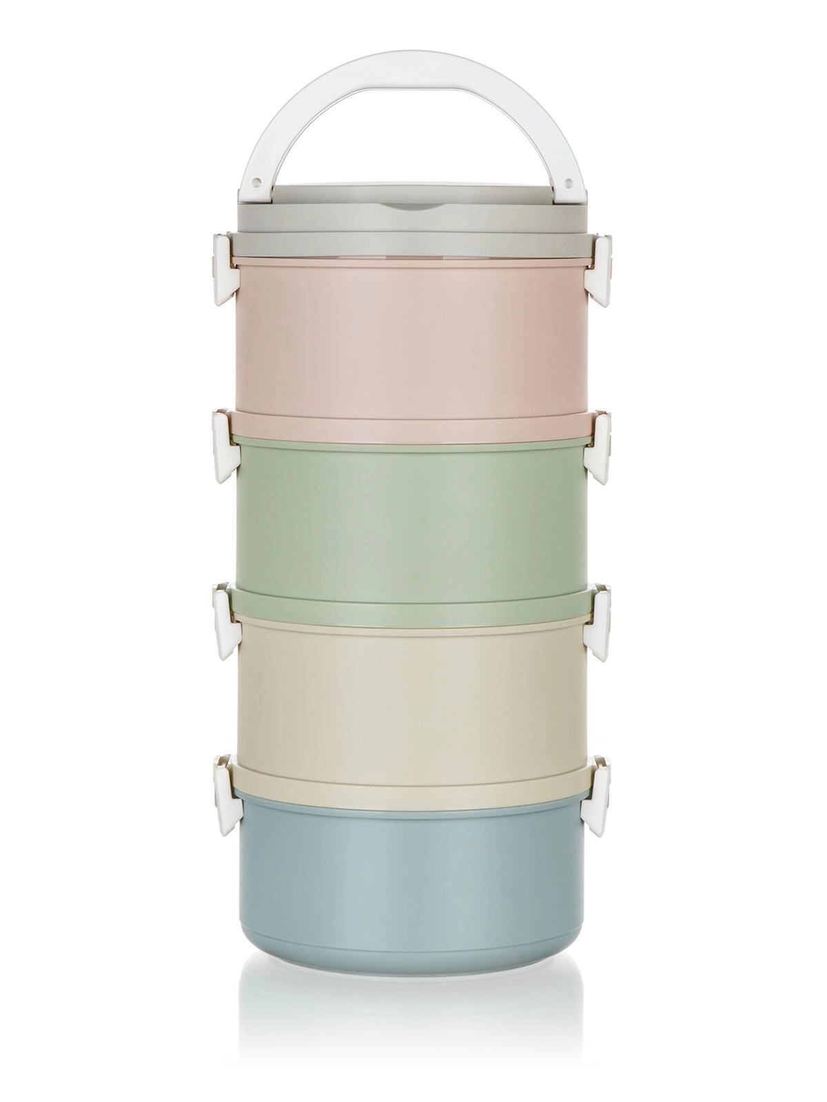 Štiri samostojne posodice za pregledno razdelitev jedi. Nadstropja je mogoče poljubno kombinirati in uporabljati tudi posamezno v hladilniku, zamrzovalniku in mikrovalovni pečici.
