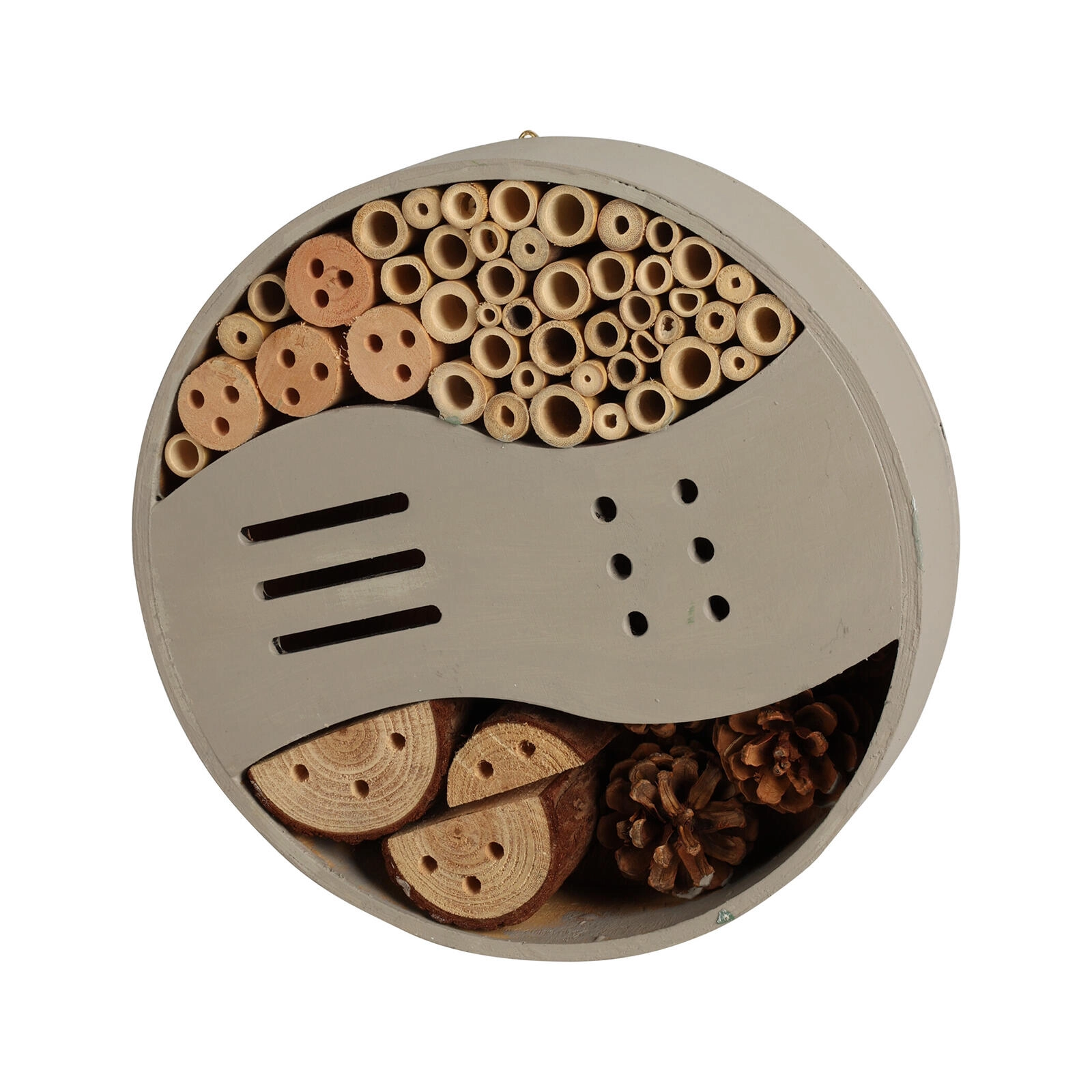 Na vrt privabite koristne opraševalce in plenilske žuželke s tem kakovostnim lesenim hotelom za žuželke s premerom 25 cm. Ponuja varno zatočišče za prezimovanje in poletno skrivališče, pomaga pri naravni zaščiti rastlin ter podpira biotsko raznovrstnost vrta.