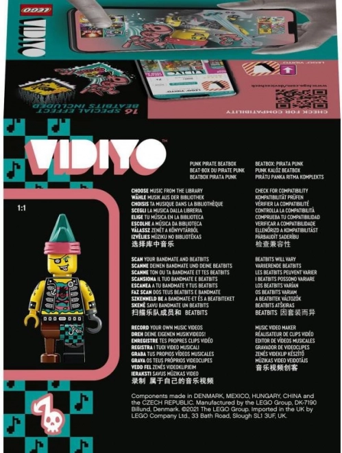 Set LEGO VIDIYO punk piratski beatbox spremeni otroke v režiserje, producente in zvezde lastnih videospotov. Dovolj je, da prenesete aplikacijo, skenirate piratsko minifigurico in BeatBite, in že imate na voljo raznolike učinke, izzive in plesne gibe. BeatBox lahko okrasite z LEGO kockami – po predlogi ustvarite motiv sidra, skrinje z zakladom ali piratske ladje, lahko pa oblikujete tudi povsem svoj videz.