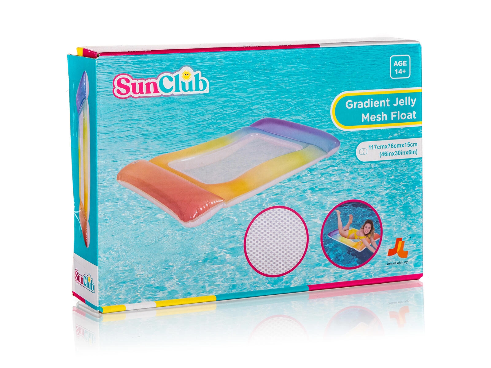 Uživajte v poletnem sproščanju na vodi s to udobno napihljivo blazino z mrežo. Zahvaljujoč dimenzijam 117 × 76 cm in nosilnosti 80 kg nudi stabilen počitek, medtem ko zračna mreža prijetno hladi. Trpežen vinil in mavrični dizajn zagotavljata slog in dolgo življenjsko dobo.