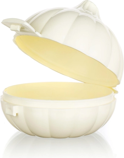 Stilska in higienska škatla za česen ACCASA v kremni barvi ohranja stroke dlje sveže in brez neprijetnih vonjav v kuhinji. Je lahka, trpežna in enostavna za vzdrževanje. Zaradi svojih kompaktnih mer se prilega vsaki omarici ali kuhinjskemu pultu, njena oblika pa se lepo ujema s kuhinjskimi dodatki. Praktično shranjevanje česna, trpežna plastika, enostavno čiščenje in kompaktna velikost bodo navdušili vse, ki cenijo red in sveže sestavine.