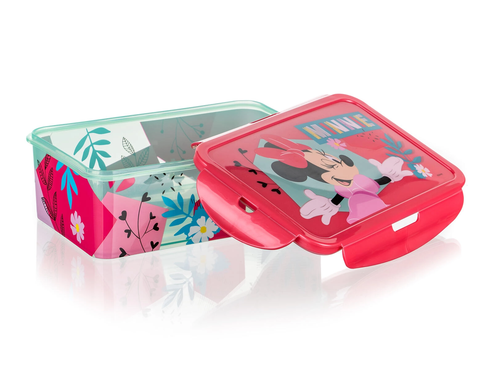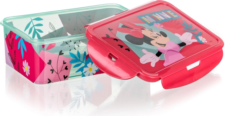 Trpežna plastika je idealna za vsakodnevno uporabo. Otroški motiv MINNIE spodbuja redno malicanje in olajša prepoznavanje škatle.