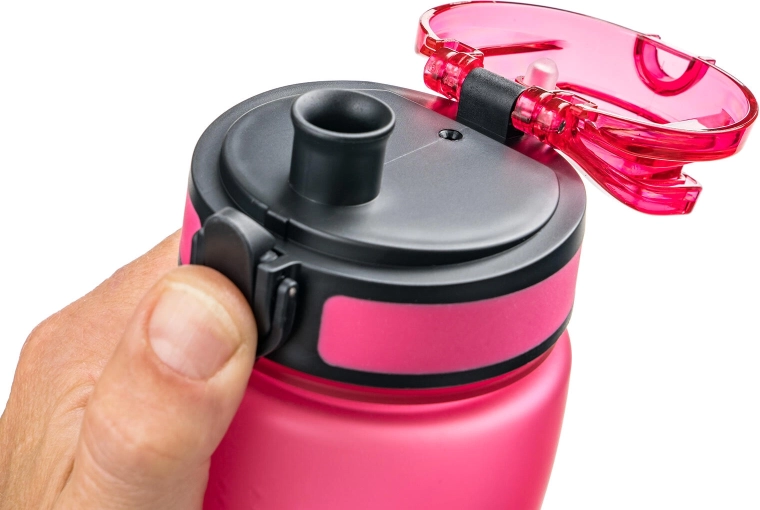 Gumb in zapora na pokrovčki olajšata pitje med športom in na poti brez potrebe po odvijanju.
