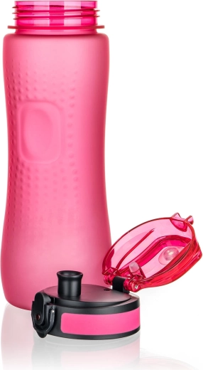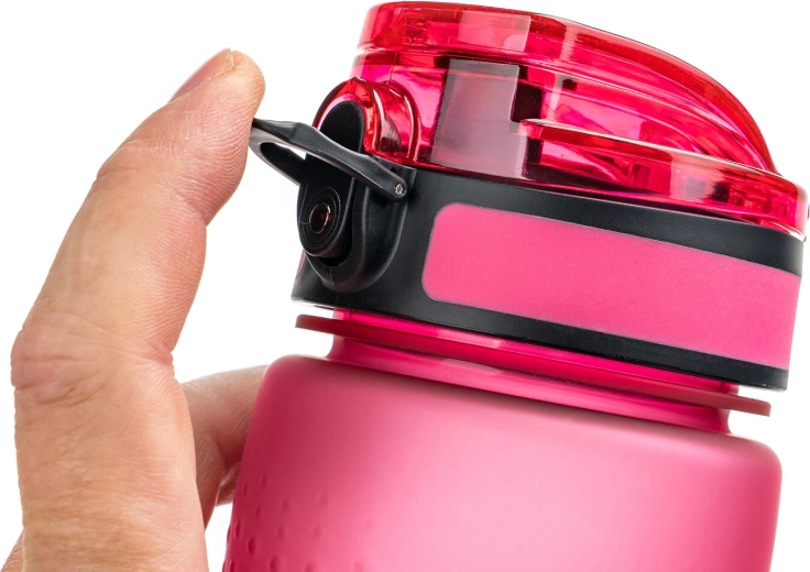 Stilna rožnata športna steklenica SKYLAR s prostornino 750 ml iz trpežne plastike ponuja udobno vsakodnevno pitje doma, v službi in med športom. Ima varno preklopno pokrovčko z varovalom, nedrseč oprijem in širok vrat za enostavno polnjenje in čiščenje. Je tesnilna in odporna za hladne in tople napitke do 90 °C.