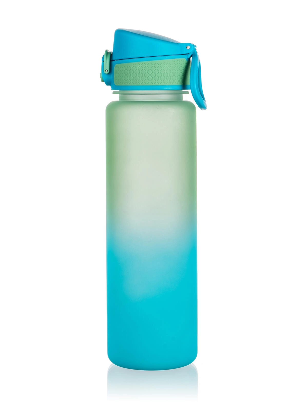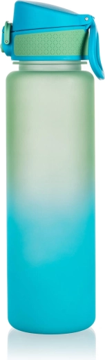 Stilna in vzdržljiva športna steklenica s prostornino 750 ml v modro‑zeleni barvi za vsakodnevno hidracijo. Izdelana iz kakovostne plastike, primerna za hladne in vroče napitke do 90 °C, z zanesljivim vodotesnim pokrovčkom, hitrym enoročnim odpiranjem in praktično zanko za nošenje.