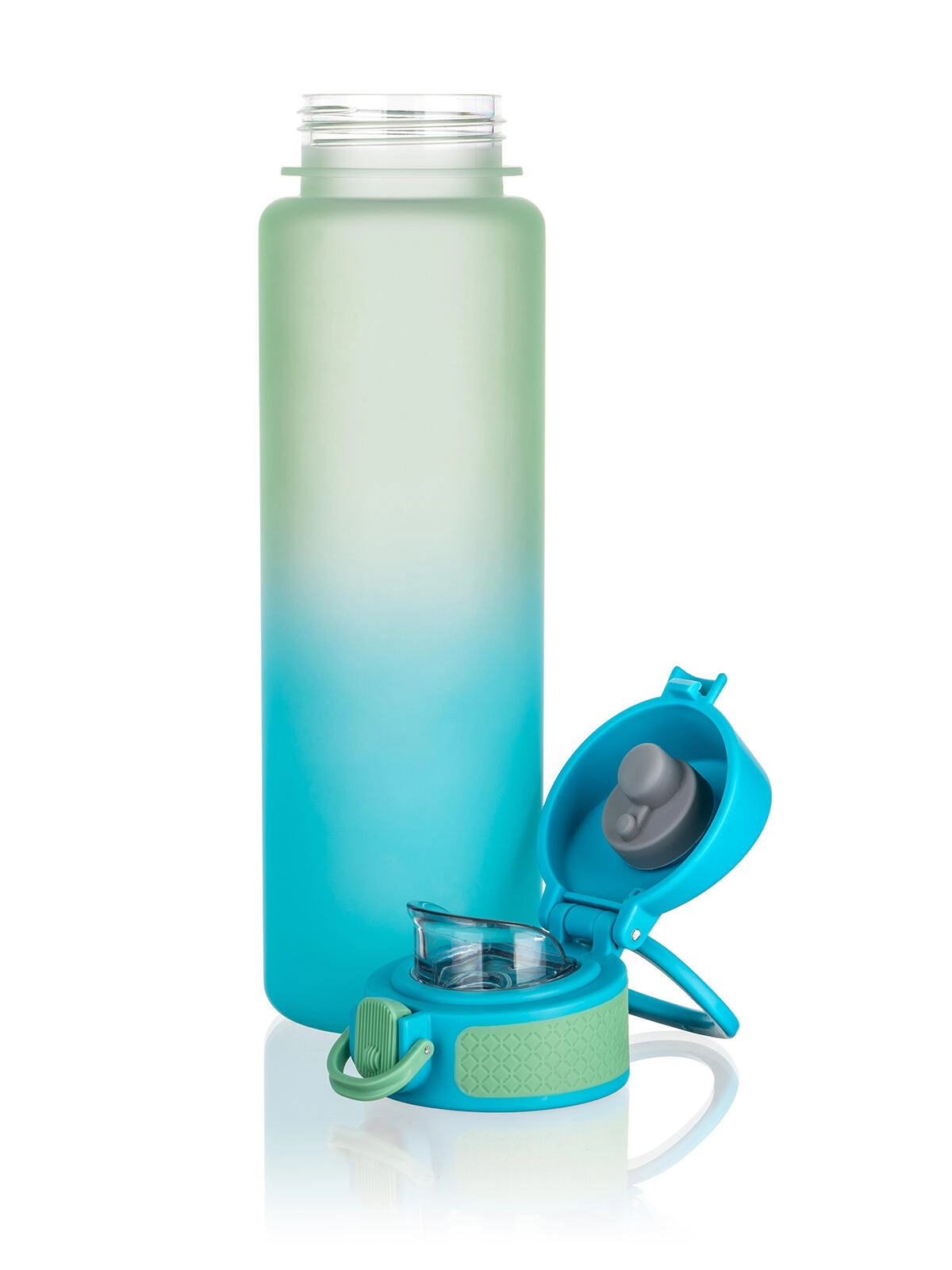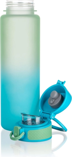 Ta vsestranska steklenica za vodo ponuja idealno kombinacijo lahkotnosti, vzdržljivosti in praktičnosti. Mat površina s prijetnim oprijemom ter prelivajoča modro‑zelena barva zagotavljata sodoben videz, medtem ko širok vrat olajša polnjenje in čiščenje.