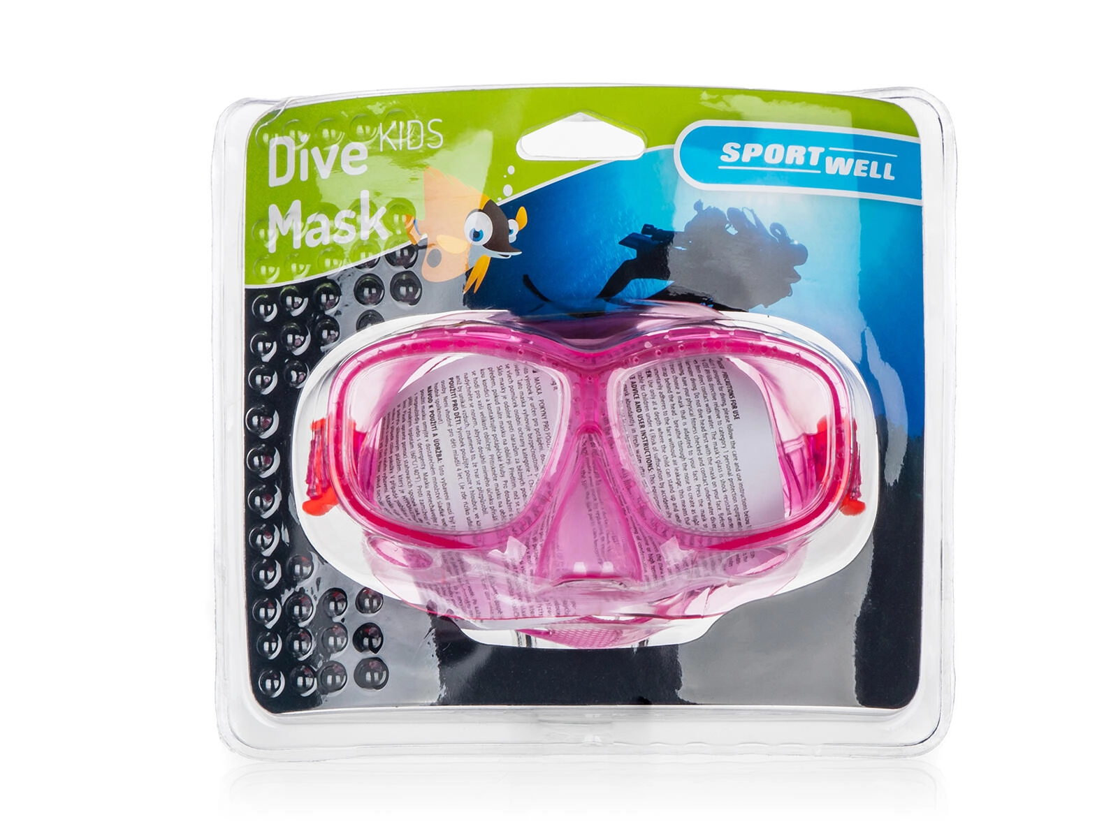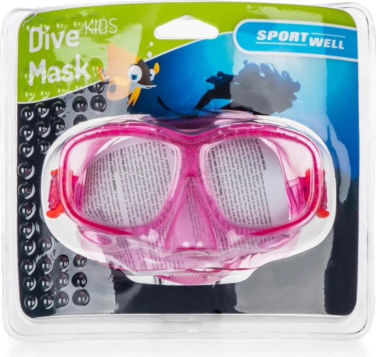 Otroška potapljaška maska SPORTWELL za varno in zabavno raziskovanje pod vodo. Ponuja široko vidno polje zahvaljujoč deljenim polikarbonatnim lečam, udobno tesnjenje in nastavljiv pašček za zanesljivo prileganje. Na voljo v rožnati in modri barvi.