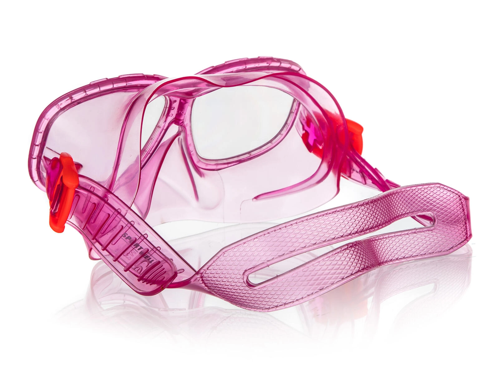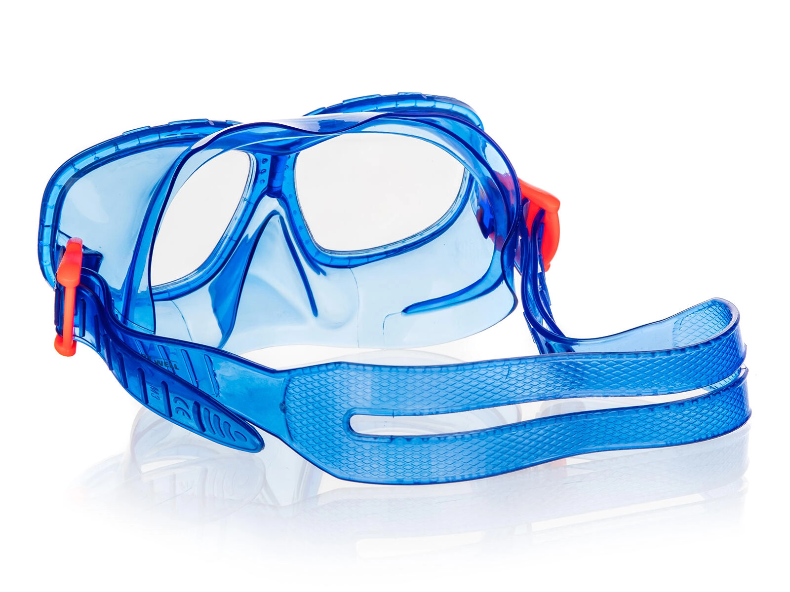 Po zaslugi nastavljivega paščka se maska dobro prilega različnim oblikam otroških obrazov. Deljen vizir omogoča boljši periferni vid in prispeva k večjemu udobju pri plavanju in igri v vodi.