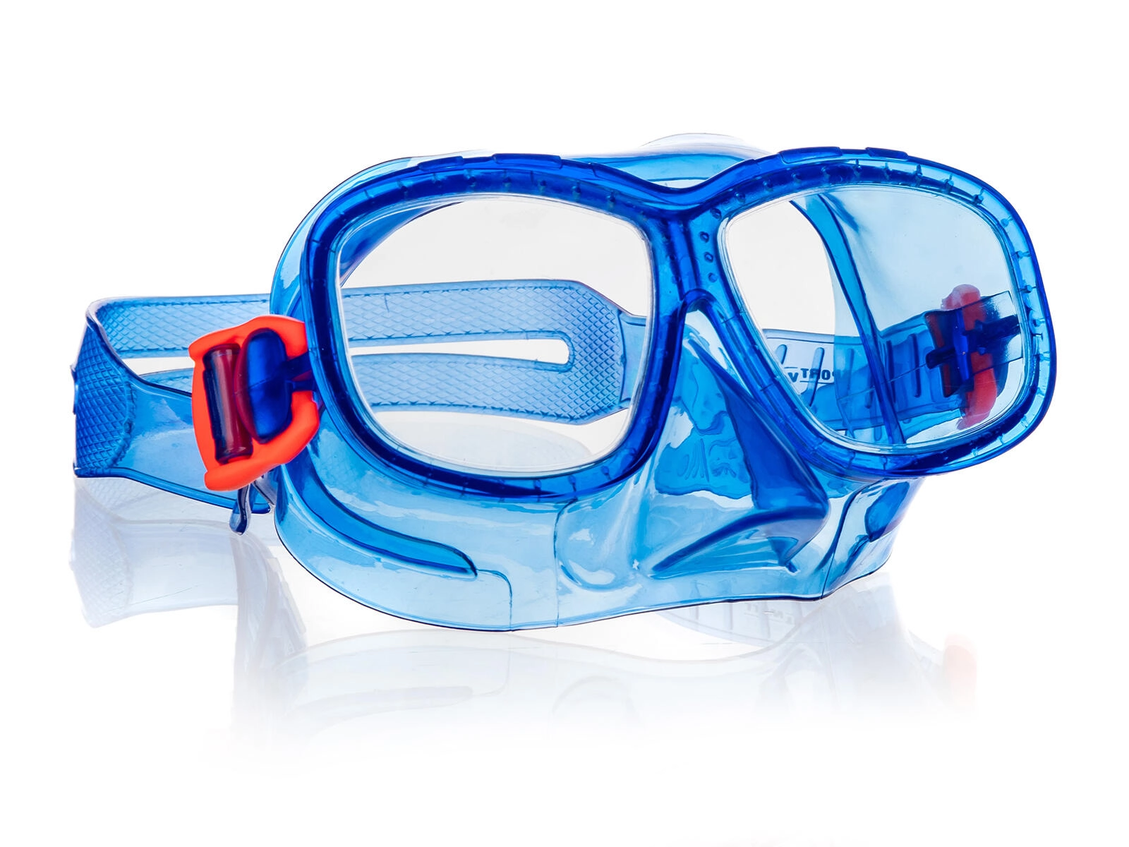 Deljen vizir iz odpornega polikarbonata zagotavlja jasno vidljivost pod vodo in bolje ščiti oči malih plavalcev.