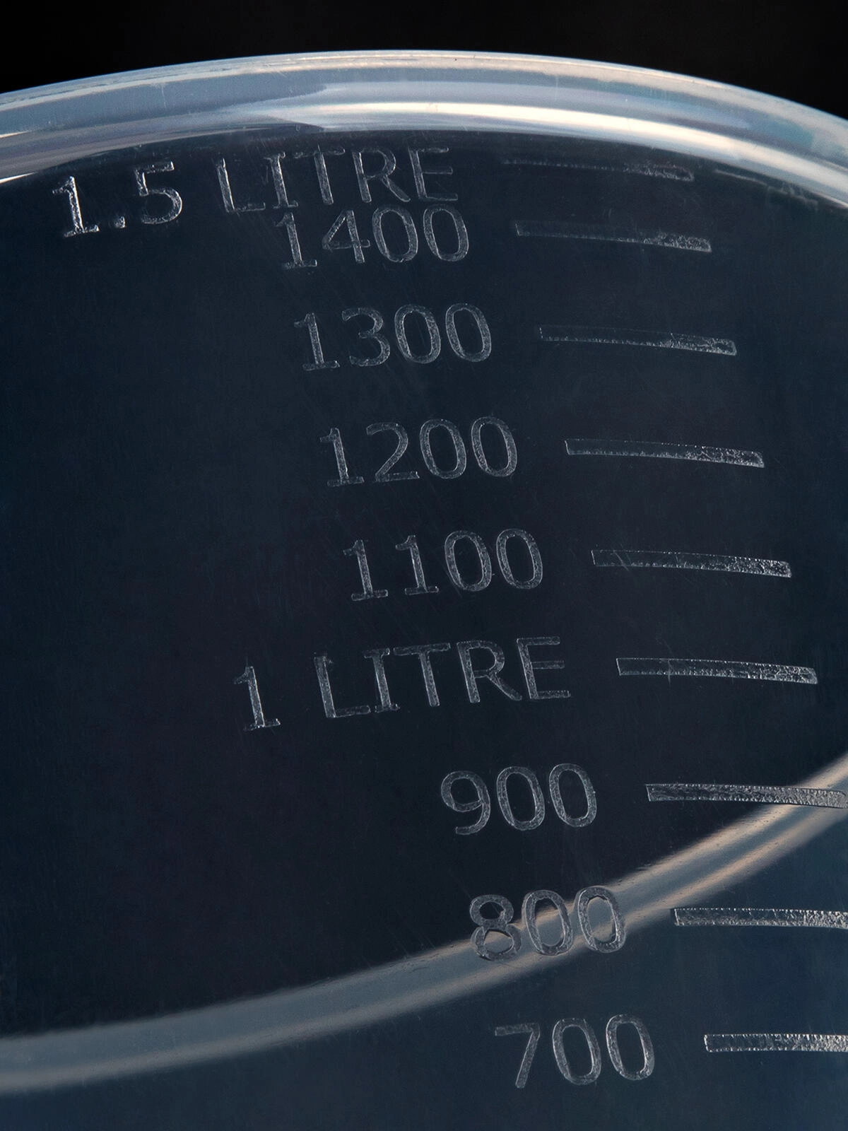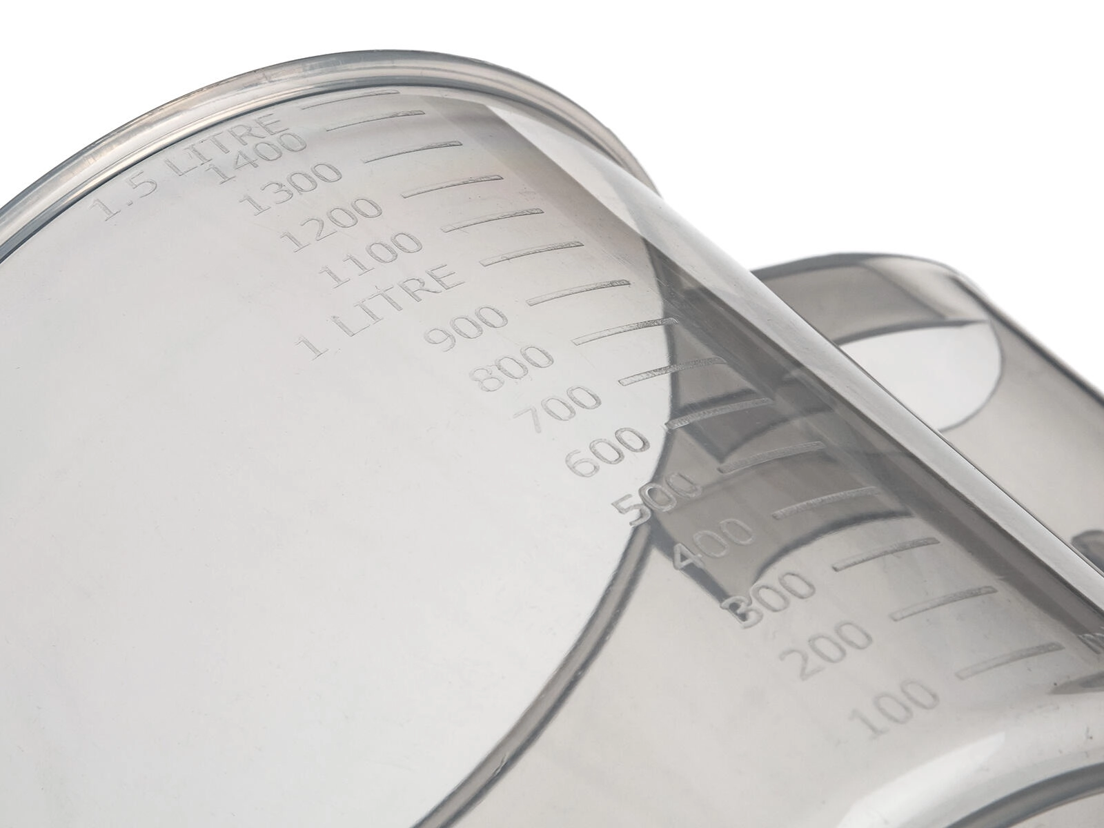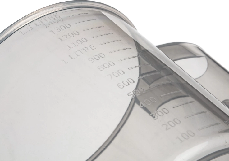 Vtisnjena lestvica v ml in l do 1,5 l omogoča hitre in zanesljive odčitke pri kuhanju in peki.
