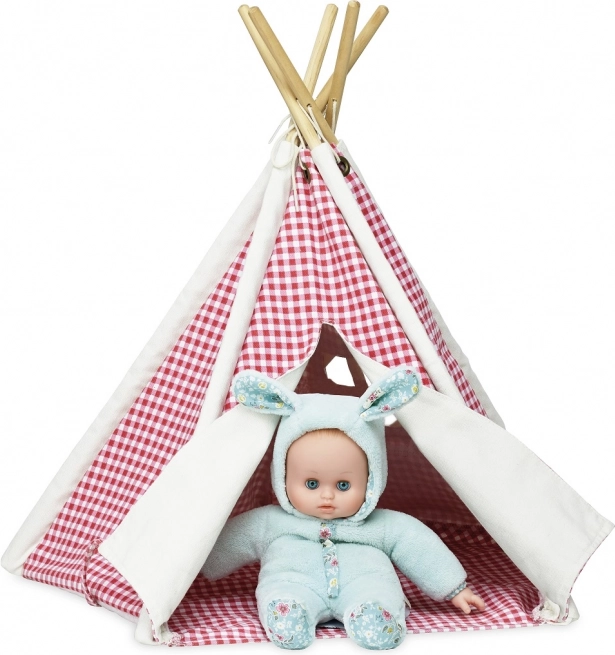 Prisrčen mini tipi za punčke z rdeče-belim karirastim vzorcem ustvari otrokom prijeten kotiček za igro. Ima trdno leseno konstrukcijo, preprosto sestavljanje in kakovosten tekstilni pregrinjalo, ki lepo dopolni otroško sobo.