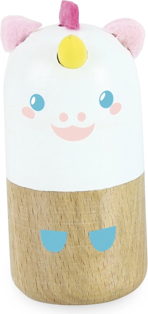 Vlečni samorog Lily je idealen prvi prijatelj za sprehode po stanovanju in otroški sobi. Zaradi premišljene izdelave iz lakiranega lesa in nežnih filcastih detajlov je igrača ne le estetska, temveč tudi prijetna na dotik. Ko samoroga odstranite s podvozja, se spremeni v rumba kroglo, ki otroke seznanja z zvoki in ritmom.