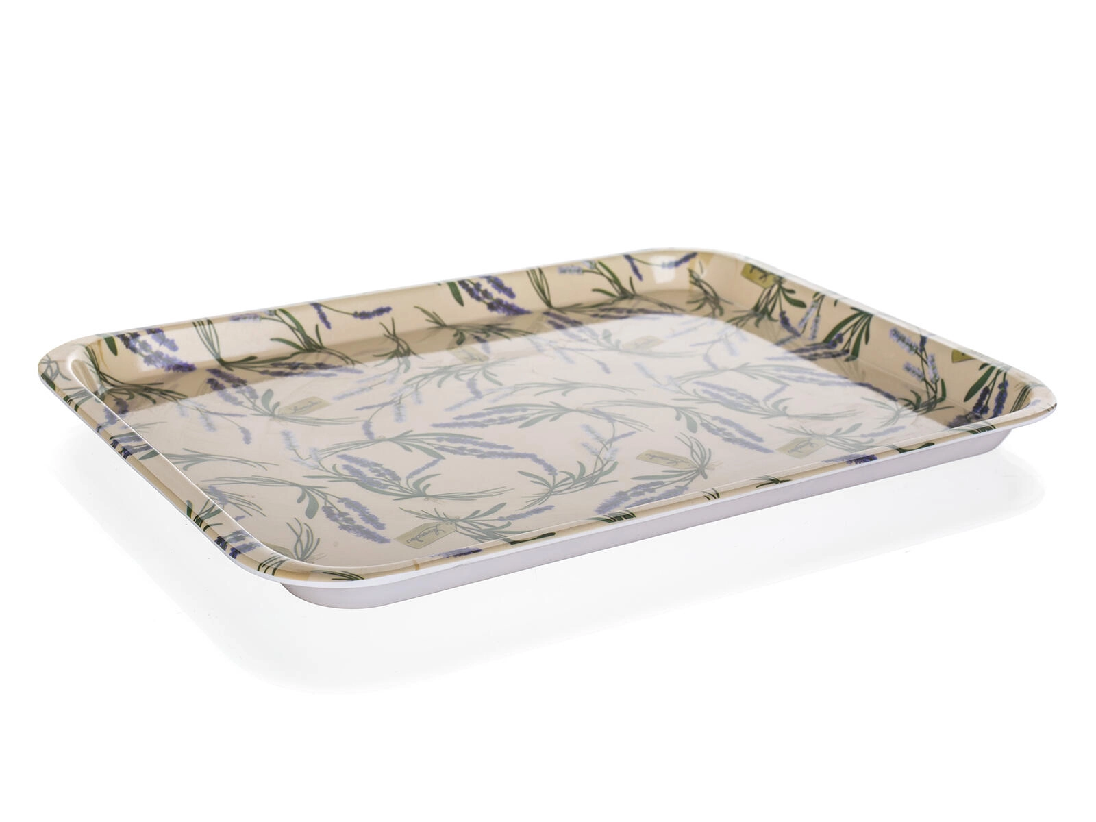 Stilski pladenj z motivom LAVENDER v dimenzijah 30 × 21,5 cm iz trpežnega melamina olajša serviranje pijač in jedi. Je lahek, preprosto obvladljiv in prenese tudi močnejšo uporabo. Ni primeren za pomivalni stroj.