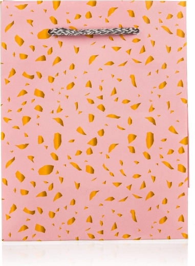 Vsakemu darilu dodajte stil s to elegantno darilno vrečko v rožnati barvi, dopolnjeno z zlatimi detajli. Idealna za manjša presenečenja, kozmetiko ali drobne predmete. Zaradi kakovostne izdelave in tekstilnega ročaja deluje vrečka reprezentativno in je hkrati praktična.