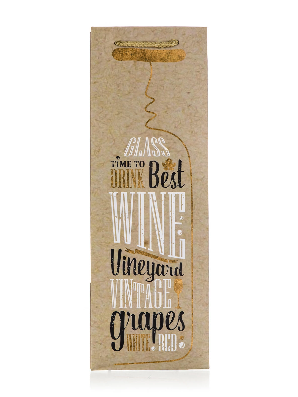 Stilska darilna vrečka za steklenico z dekorjem TIME TO DRINK izvrstno poudari vsak izročitev vina ali žganja. Izdelana je iz kakovostnega papirja in ima čvrst tekstilni ročaj za udobno in varno prenašanje. Idealna za zabave, poroke in darila za ljubitelje dobrega pitja.