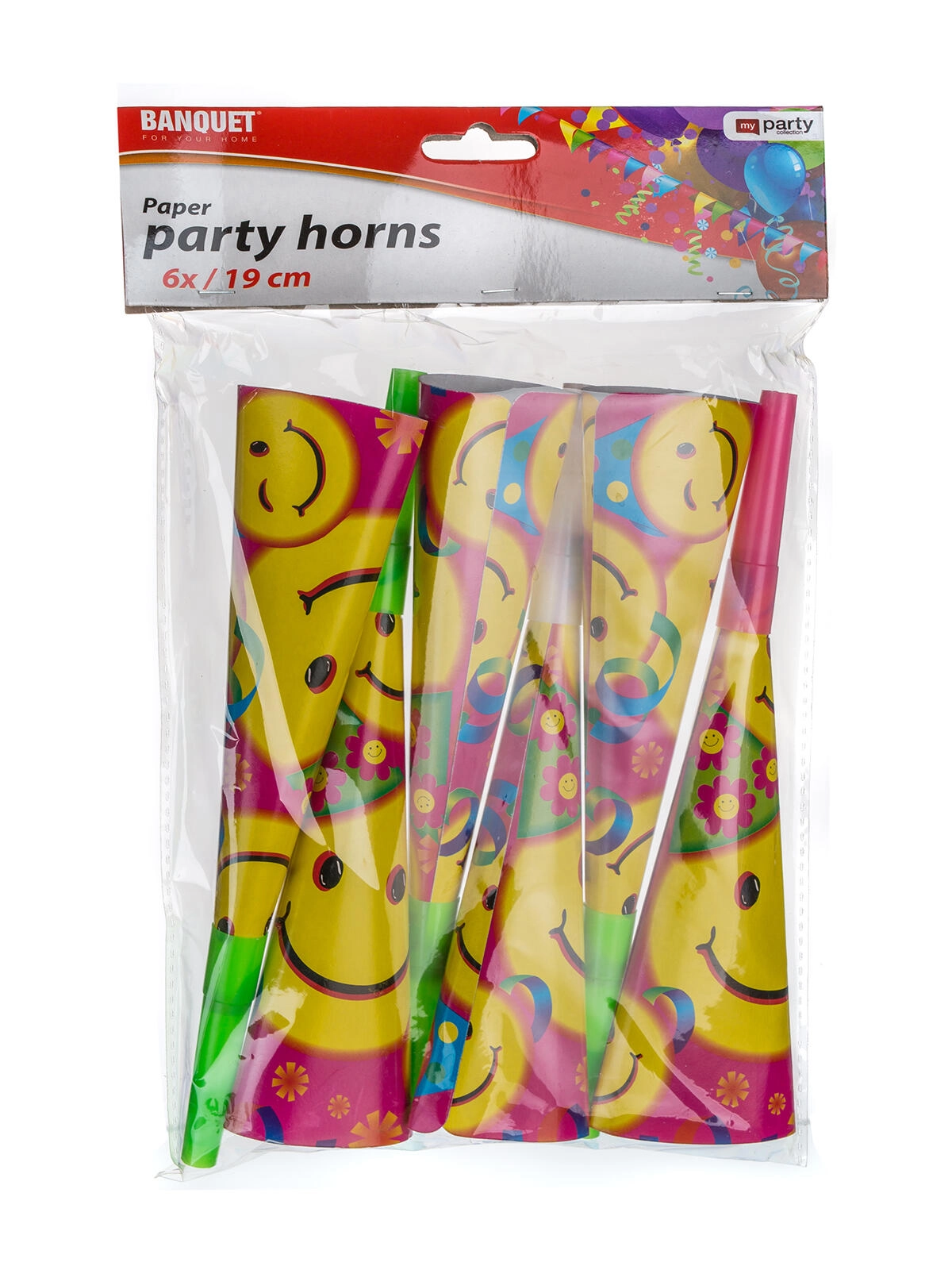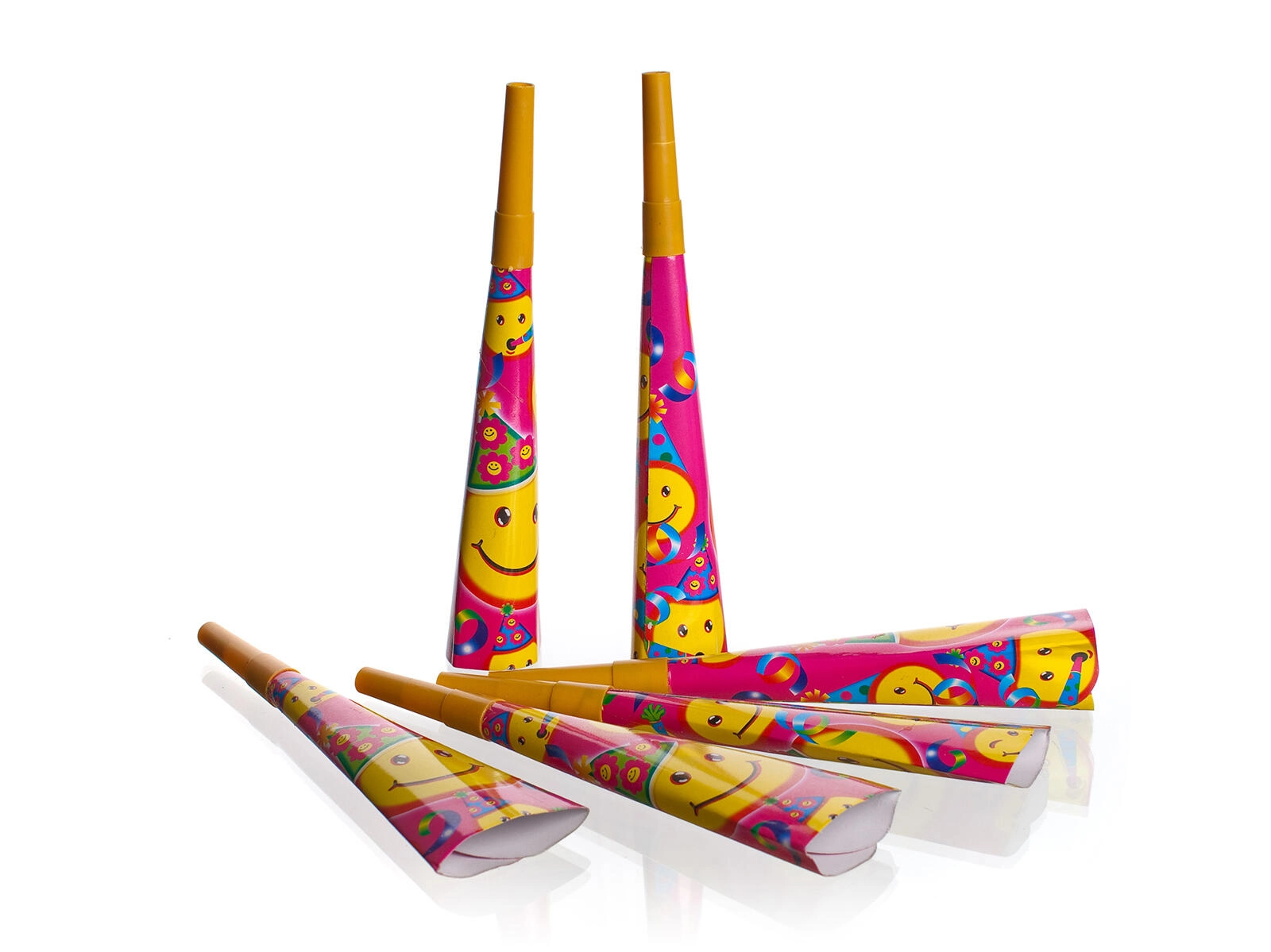Ustvarite pravo zabavno vzdušje v nekaj sekundah. Te lahke in varne trobente s plastičnim ustnikom so udobne za uporabo, barviti motivi pa bodo hkrati tudi stilska dekoracija mize.