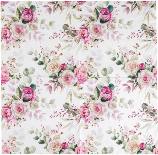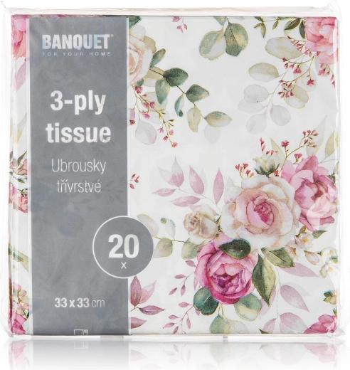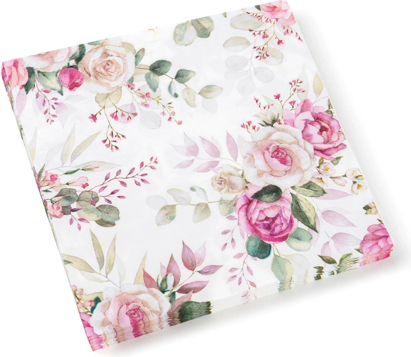 Elegantni papirnati prtički z romantičnim motivom vrtnic polepšajo vsako mizo. So 3-slojni za višjo vpojnost in trdnost, imajo priročno velikost 33 × 33 cm, paket 20 kos pa je kot nalašč za zabave, poroke in vsakodnevno pogostitev.