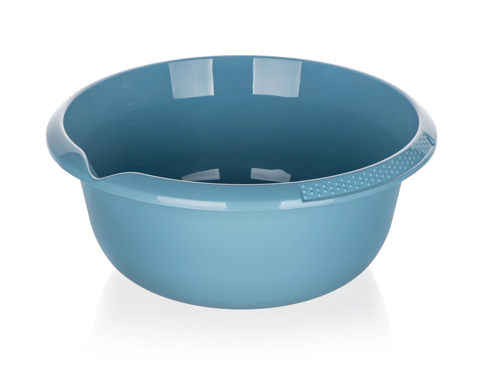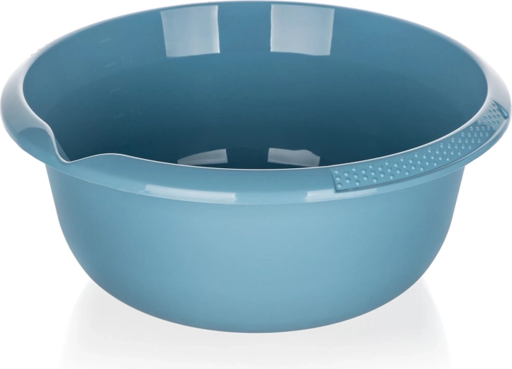 Zanesljivo modro umivalno korito iz kakovostne plastike vam olajša vsakodnevno čiščenje in skrb za gospodinjstvo. Zahvaljujoč praktičnemu izlivalniku boste udobno prelili vodo ali raztopine brez neželenega razlivanja, širok rob s teksturo pa zagotavlja zanesljiv oprijem tudi pri polni napolnjenosti.