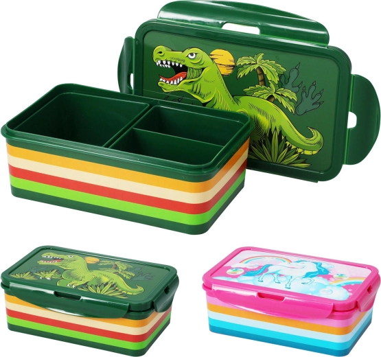 Škatla je izdelana iz odpornega plastičnega materiala in se zaradi kompaktnih mer prilega šolski torbi ali nahrbtniku za izlete. Na voljo je v privlačni mešanici dveh dekorjev v barvah zelena in rožnata.
