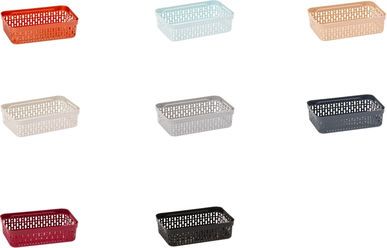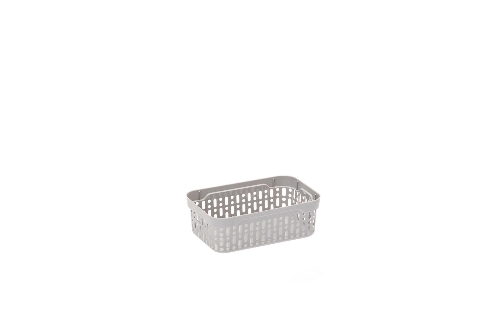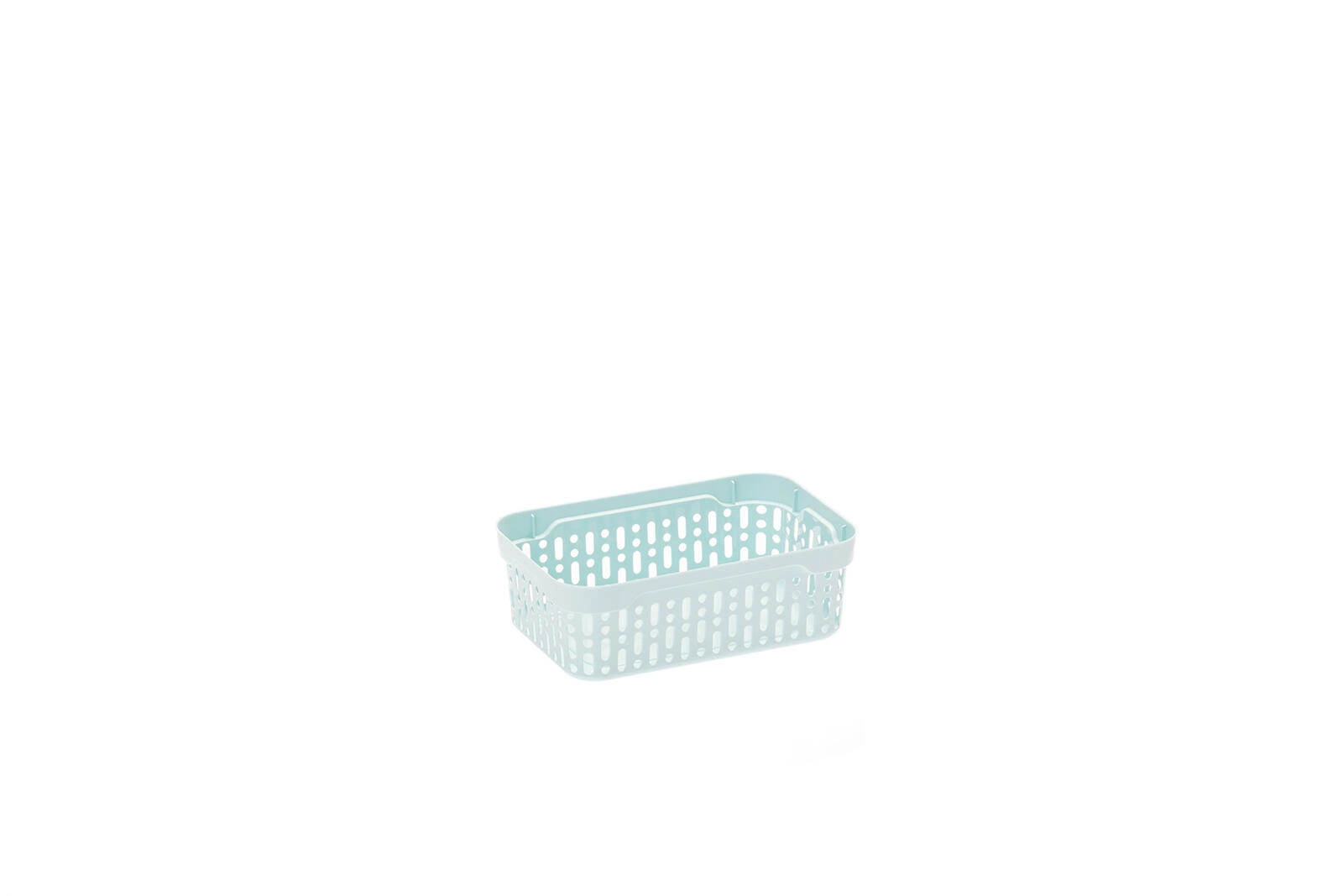 Praktična plastična košarica MORSETTA v velikosti 17,7 × 11,7 × 6 cm je idealna za pregledno shranjevanje drobnarij v kopalnici, kuhinji, pisarni in otroški sobi. Zahvaljujoč perforiranim stranicam zagotavlja dobro kroženje zraka in hiter vizualni pregled vsebine. Je lahko čistljiva, lahka in primerna za police, predale ter pisalno mizo.