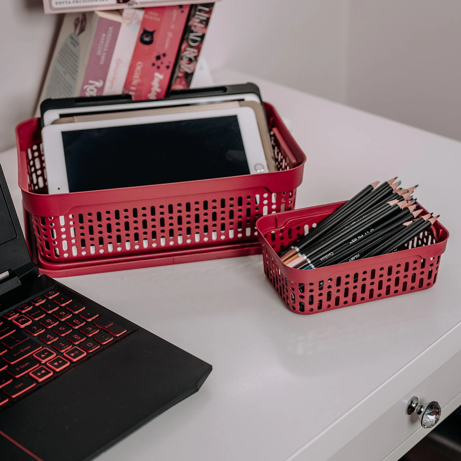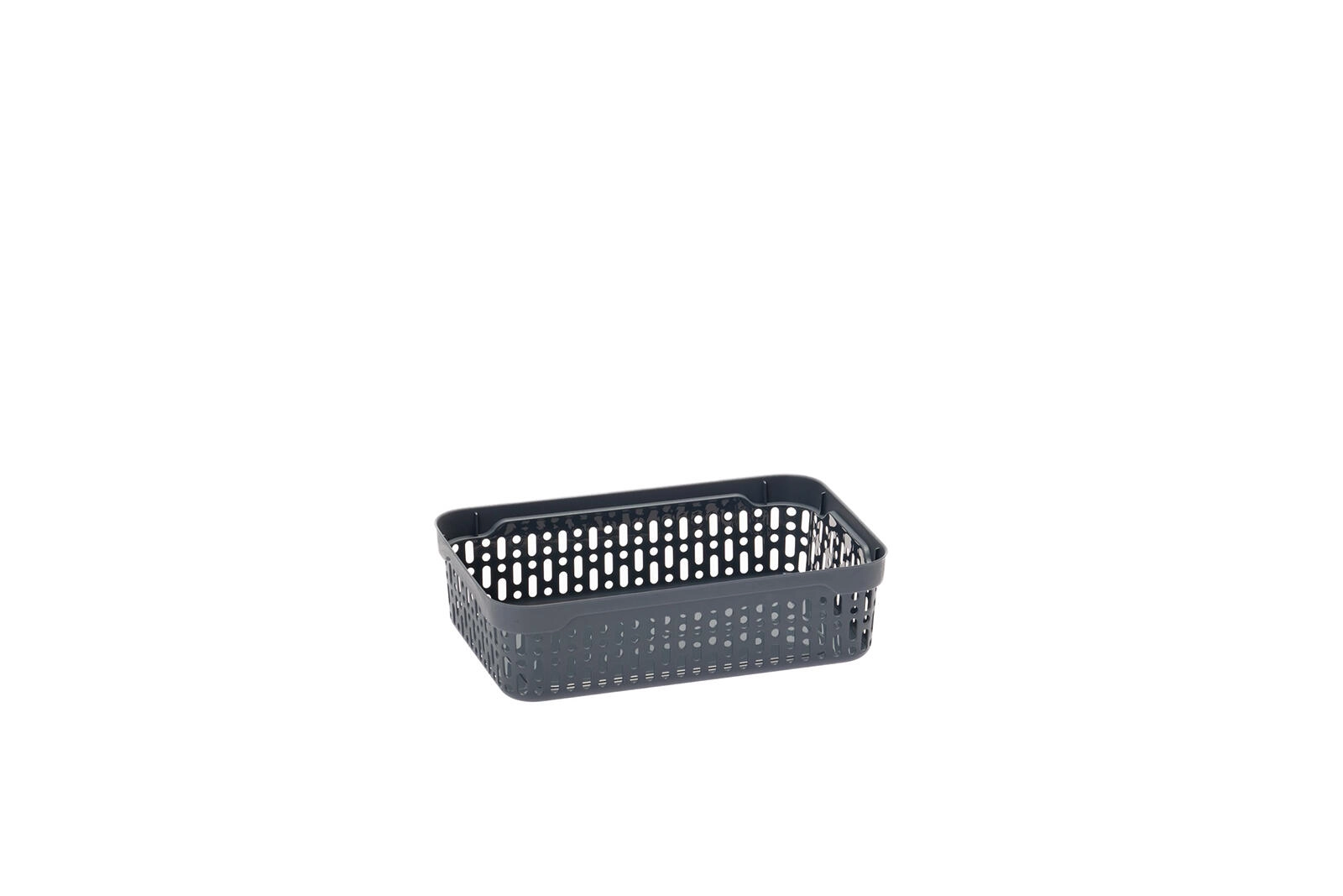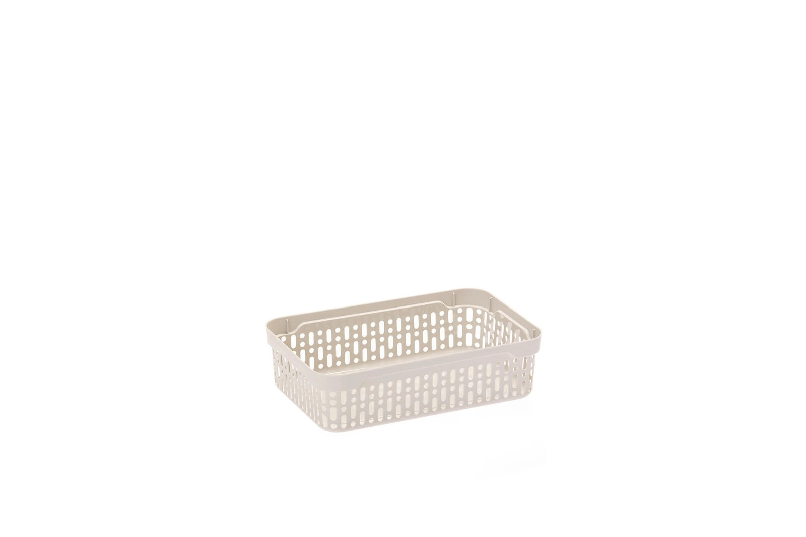 Univerzalna plastična košara MORSETTA pomaga ohranjati red v kopalnici, kuhinji in pisarni. Zaradi kompaktnih mer se prilega policam in predalom, njena perforacija zagotavlja cirkulacijo zraka in hiter pregled nad vsebino. Je enostavna za čiščenje, lahka in na voljo v elegantni mešanici barv za usklajevanje z interierjem.
