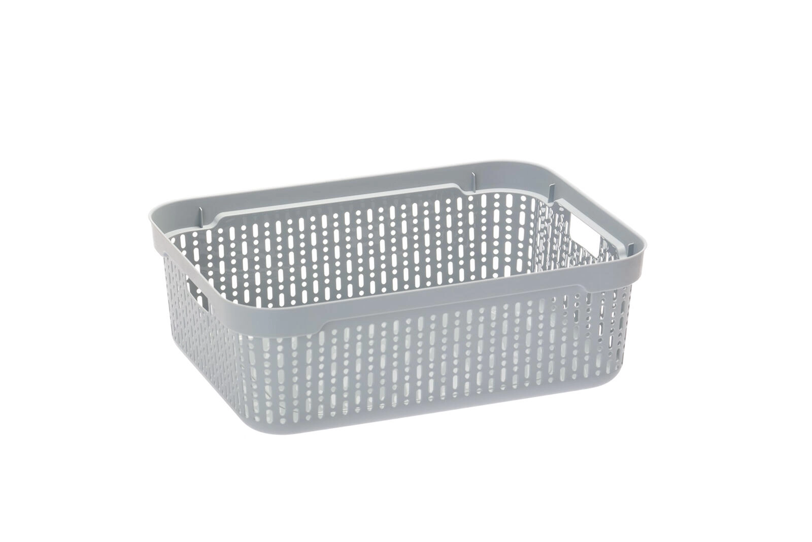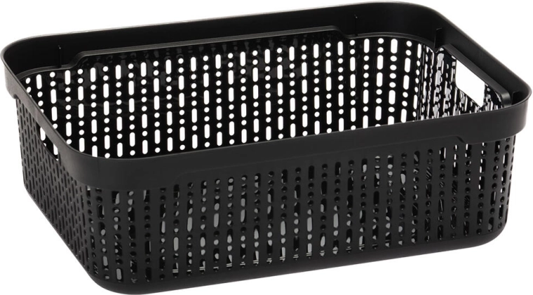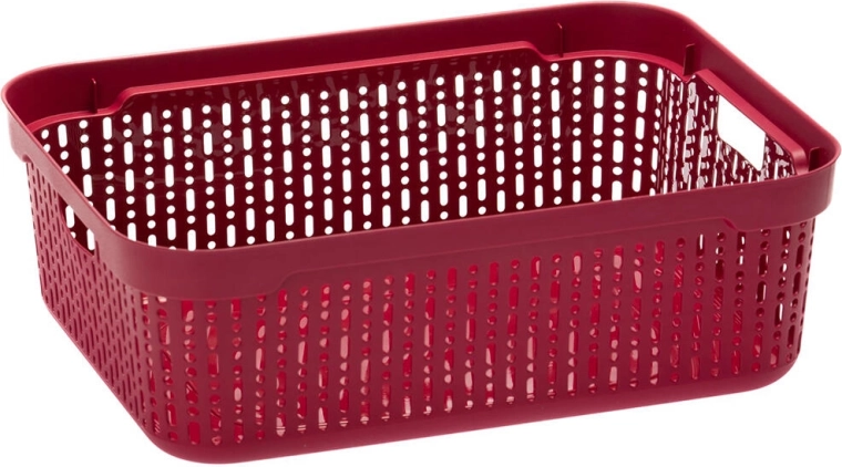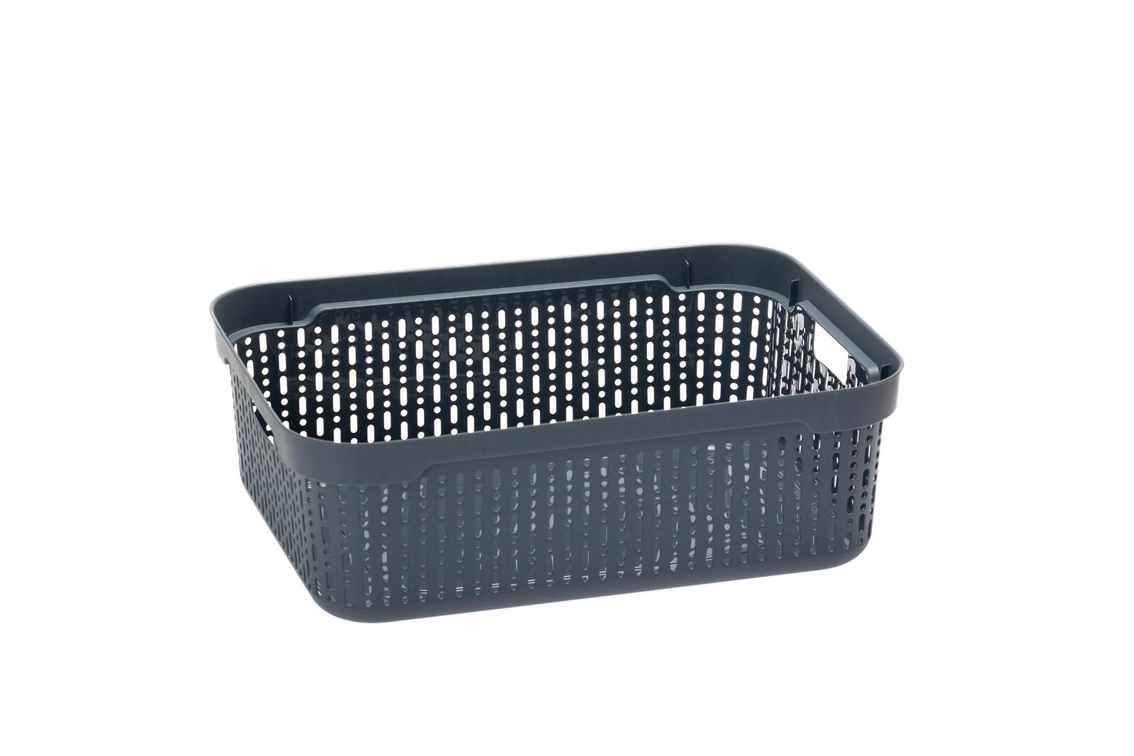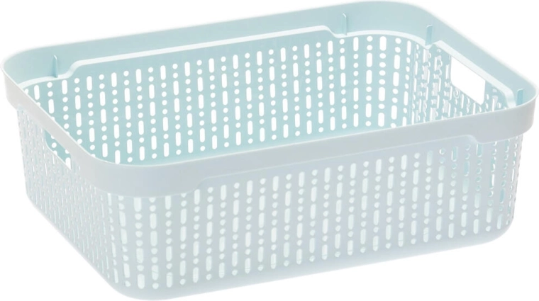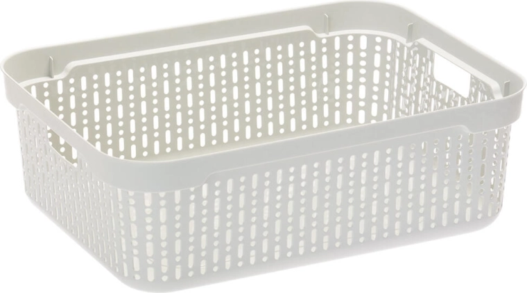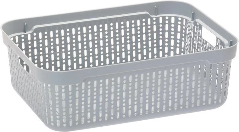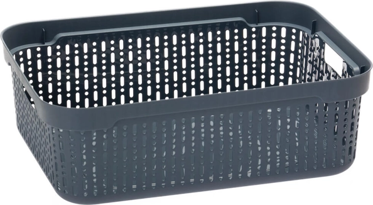 Praktična plastična shranjevalna košara Morsetta z merami 39,3 × 30 × 13 cm je idealna za pregledno shranjevanje stvari v gospodinjstvu, pisarni in garderobi. Ima odporno perforirano konstrukcijo za prezračevanje in hitro vidnost vsebine, vgrajene ročaje za enostavno prenašanje ter površino, ki jo je lahko čistiti. Na voljo v mešanici modernih barv za uskladitev z interierjem.