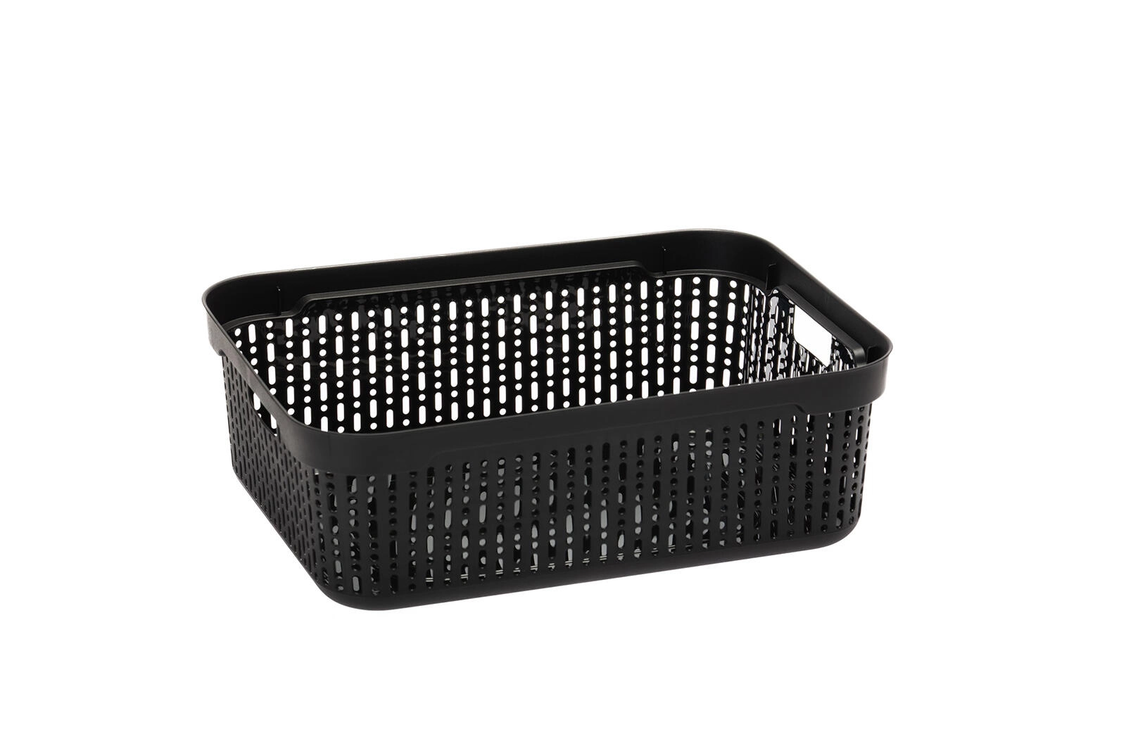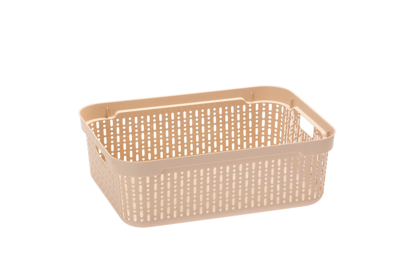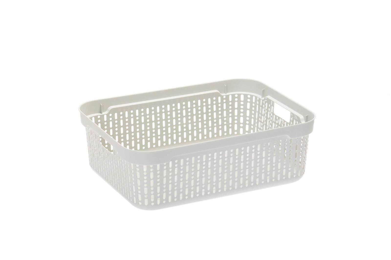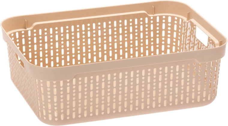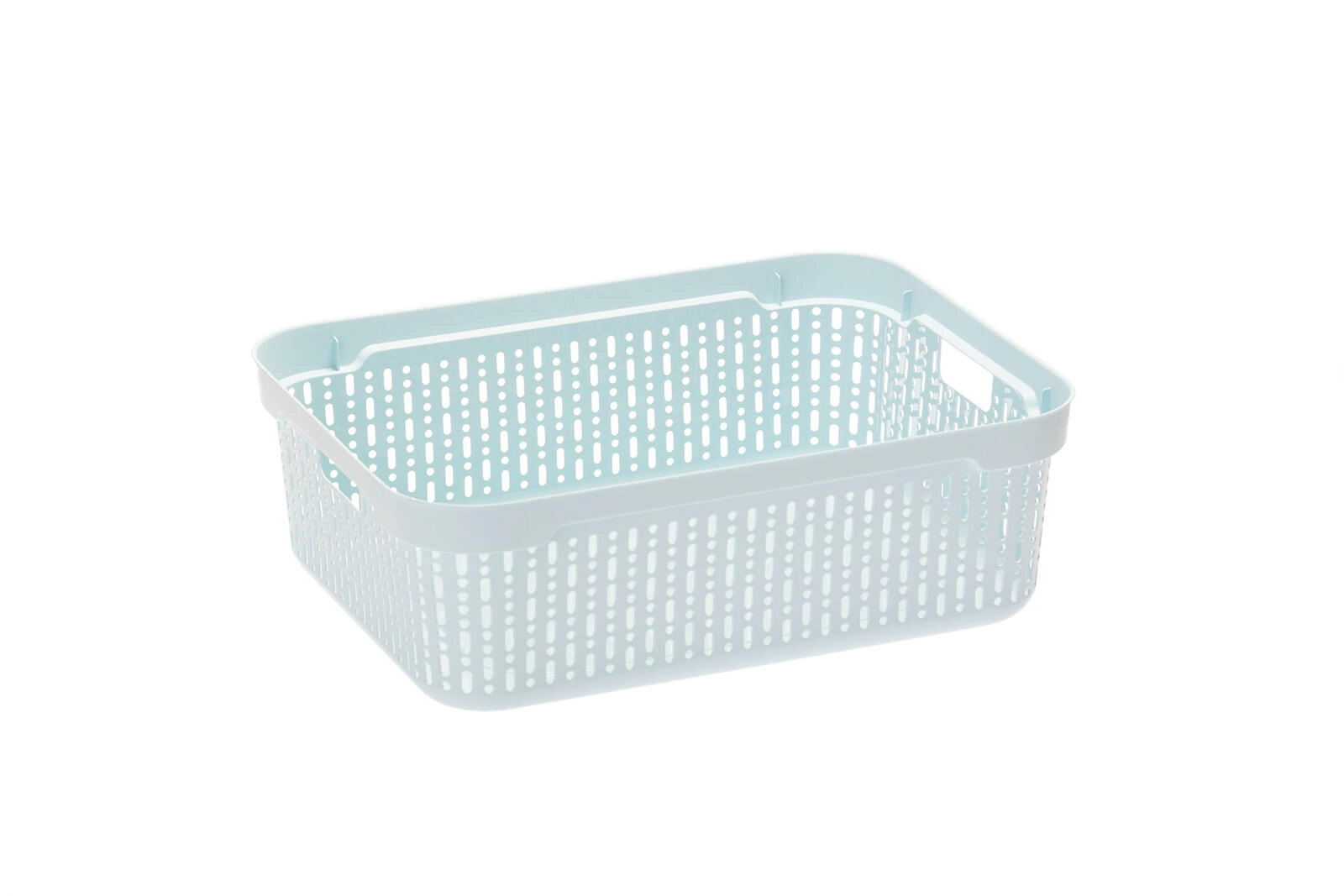 Praktična plastična shranjevalna košara Morsetta z merami 39,3 × 30 × 13 cm je idealna za pregledno shranjevanje stvari v gospodinjstvu, pisarni in garderobi. Ima odporno perforirano konstrukcijo za prezračevanje in hitro vidnost vsebine, vgrajene ročaje za enostavno prenašanje ter površino, ki jo je lahko čistiti. Na voljo v mešanici modernih barv za uskladitev z interierjem.