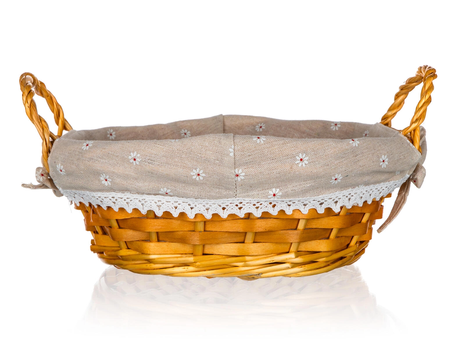 Bombažna podloga z drobnimi cvetovi in čipkastim robom košu dodaja romantičen videz ter ščiti dekoracije v notranjosti.