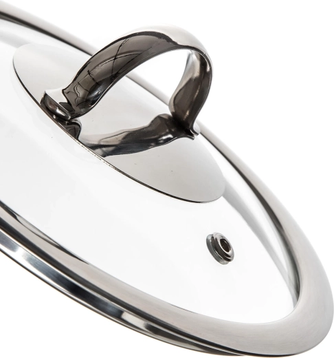 Prozoren pokrov z odprtino za paro omogoča spremljanje kuhanja brez nepotrebnega uhajanja toplote in vlage.