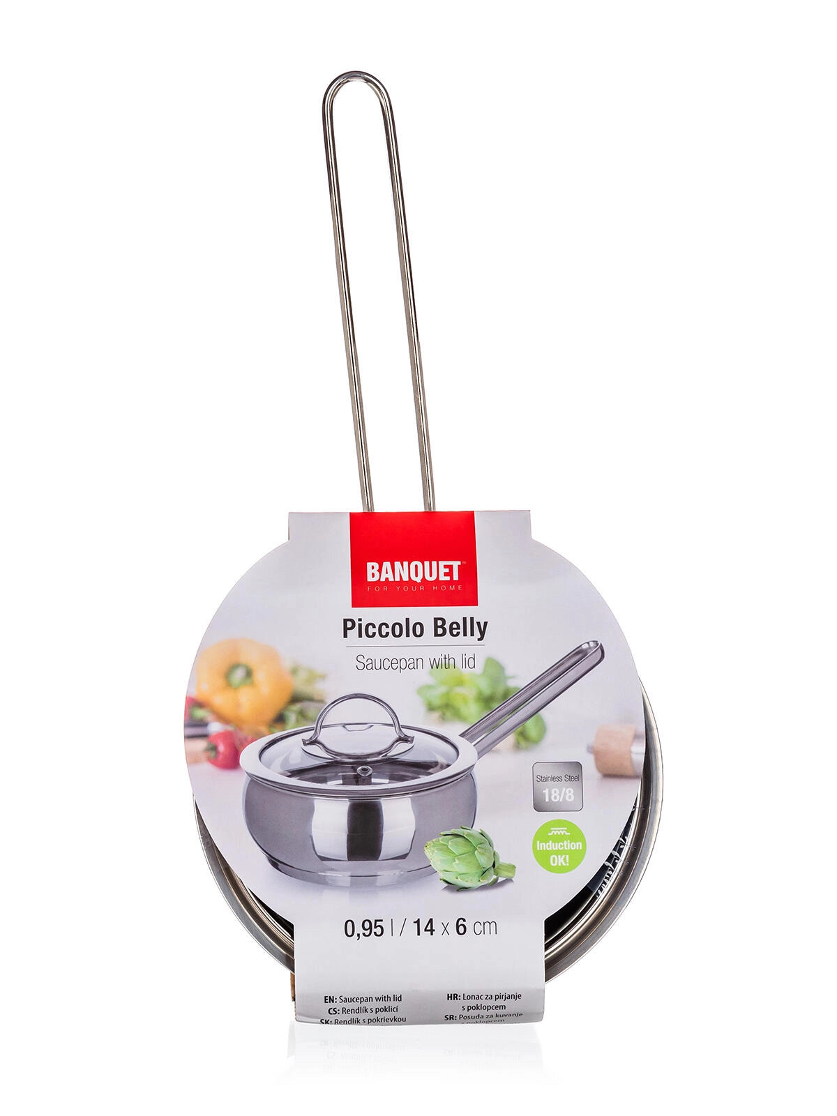 Kompaktna nerjavna kozica PICCOLO Belly s prostornino 0,95 l in premerom 14 cm je idealna za omake, pogrevanje in manjše porcije. Zahvaljujoč steklenemu pokrovu imate pregled med kuhanjem, vzdržljivo nerjavno jeklo 18/8 pa zagotavlja dolgo življenjsko dobo in preprosto vzdrževanje. Primerna za vse vrste kuhalnih plošč, vključno z indukcijo.