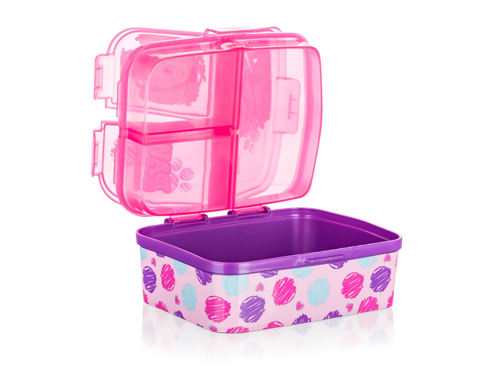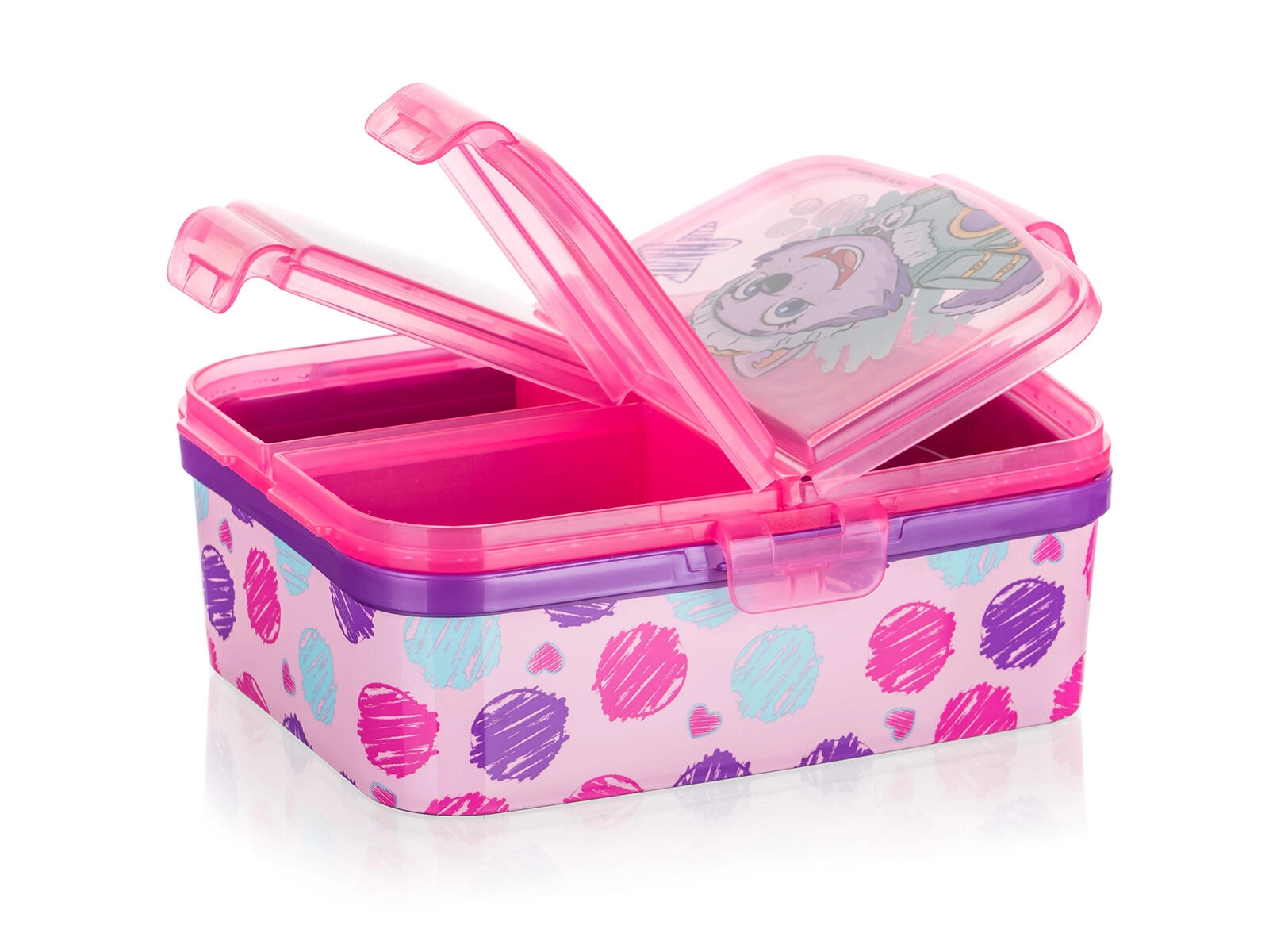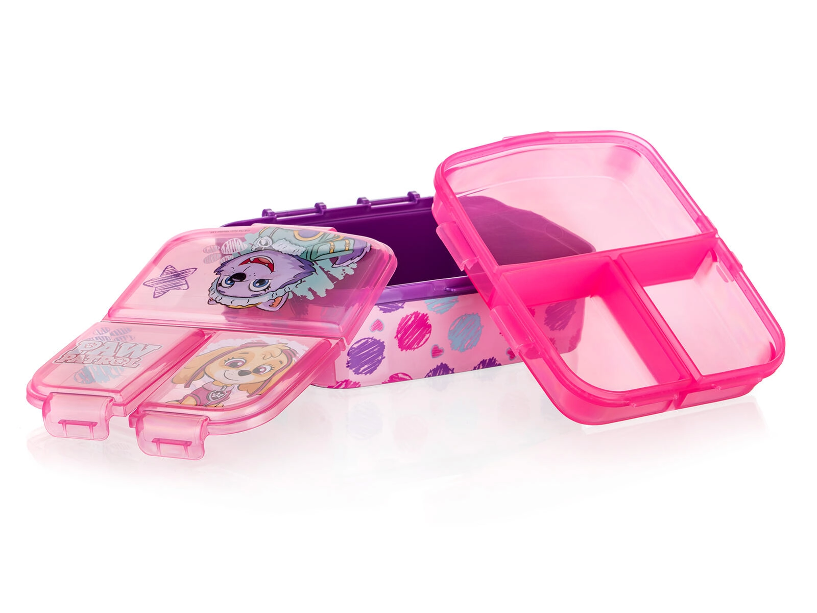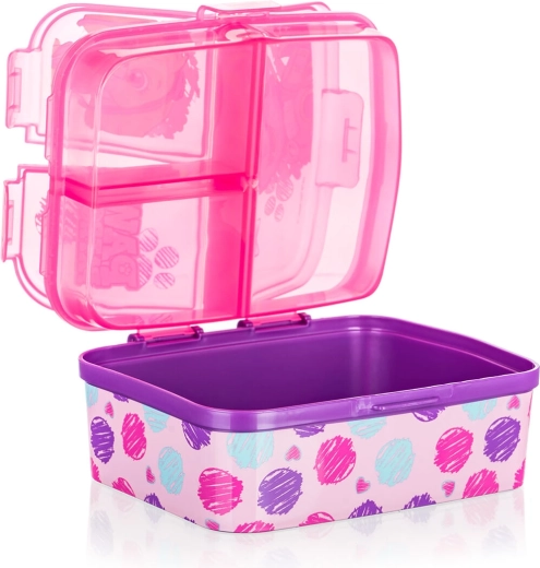 Stilna škatla za malico za otroke s priljubljenim motivom PATROLA GIRL navduši s praktično izvedbo in enostavnim vzdrževanjem. Rožnata barva z barvnim potiskom takoj pritegne pozornost, medtem ko zanesljiva zaponka zagotavlja varno zapiranje brez neželenega odpiranja v nahrbtniku.