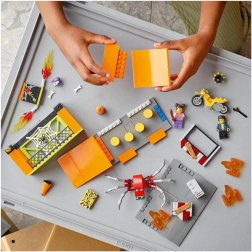 LEGO City kaskaderski park Stuntz vam omogoča zagnati motor s vztrajnikom in izvajati osupljive trike. Z več rampami in ognjenimi ovirami ta komplet ponuja neskončne možnosti za domišljijsko igro. Lahko ga kombinirate z drugimi seti LEGO City Stuntz in ustvarite še večji kaskaderski park.